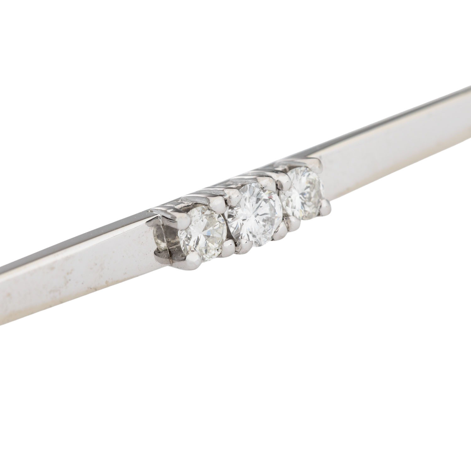 zus. ca. 0,28 ct, WEISS-LGW (H-J)/SI, WG 14K, 4,2 g, L: ca. 59,9 mm, B: ca. 2 - 3,6 mm, 20./21. Jh., minimale Tragespuren, mit Herstellerpunze und Gravur '1666'.