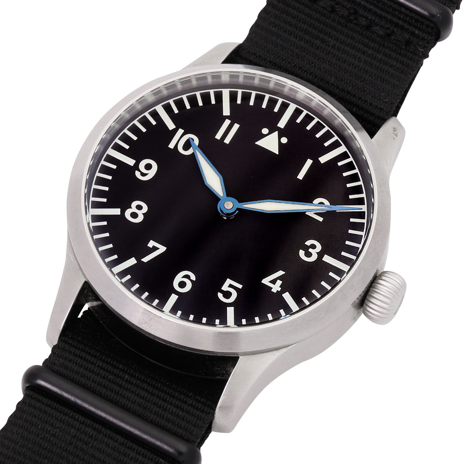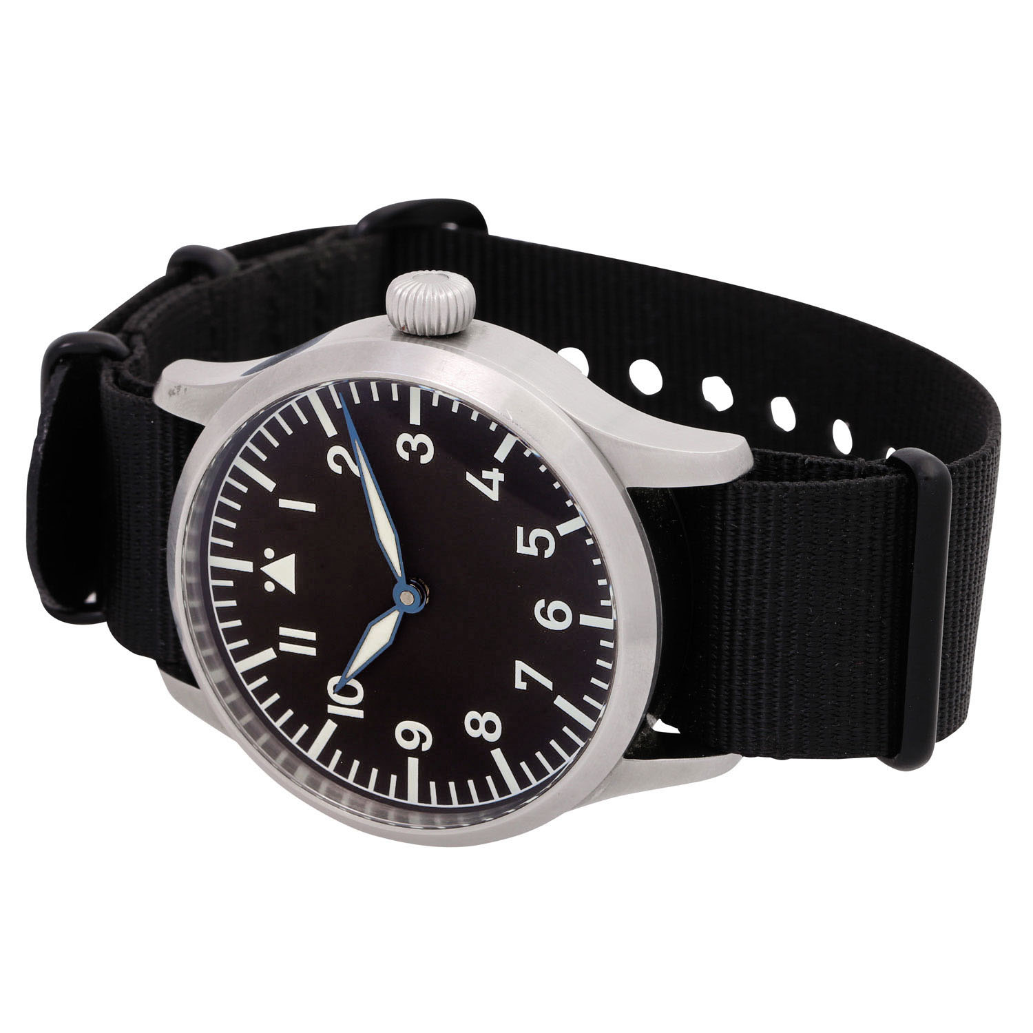Edelstahl, Gehäuseboden mit Motiv der Freiheitsstatue und Limitierungsnummer No 39/100. Handaufzug-Werk Kal. ETA 6498, sehr gute Gangwerte, Protokoll anbei. Mattschwarzes Ziffernblatt mit arabischen Ziffern, gebläute Zeiger. Schwarzes Nato Textilband. Guter Zustand, leichte Gebrauchsspuren an Gehäuse und Armband. Original Box und Garantiheft anbei, Kauf 01/2013. Durchmesser ca. 41mm ohne Krone.