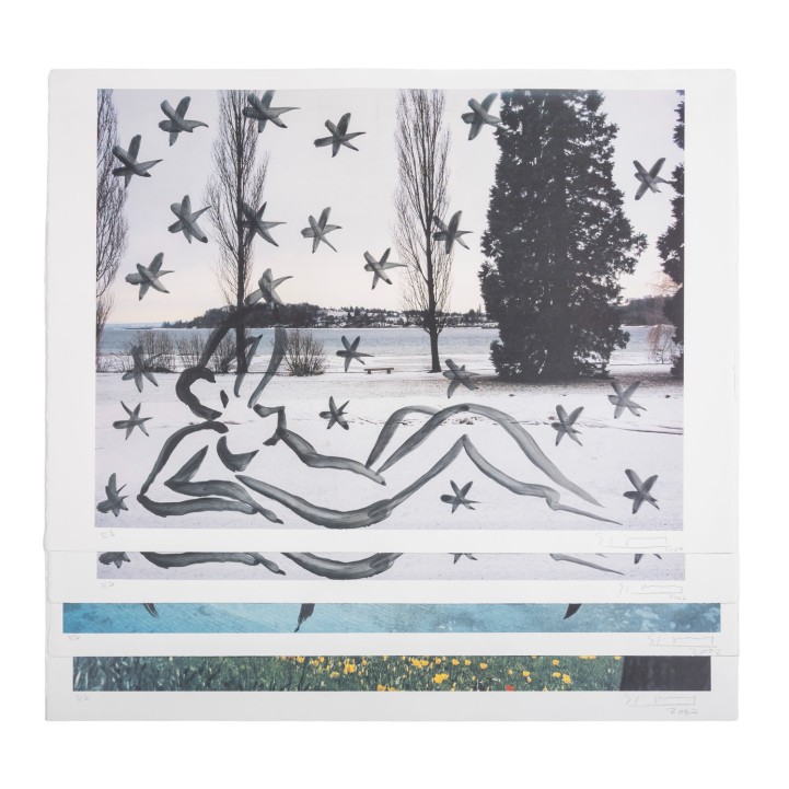 Vier Farblithographien auf Büttenpapier, E.A., sig. und dat. Blatt, HxB: 64/91 cm. Manche Kanten sind ein wenig verbogen.