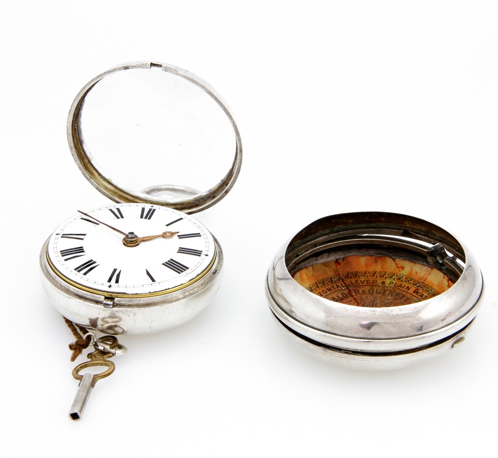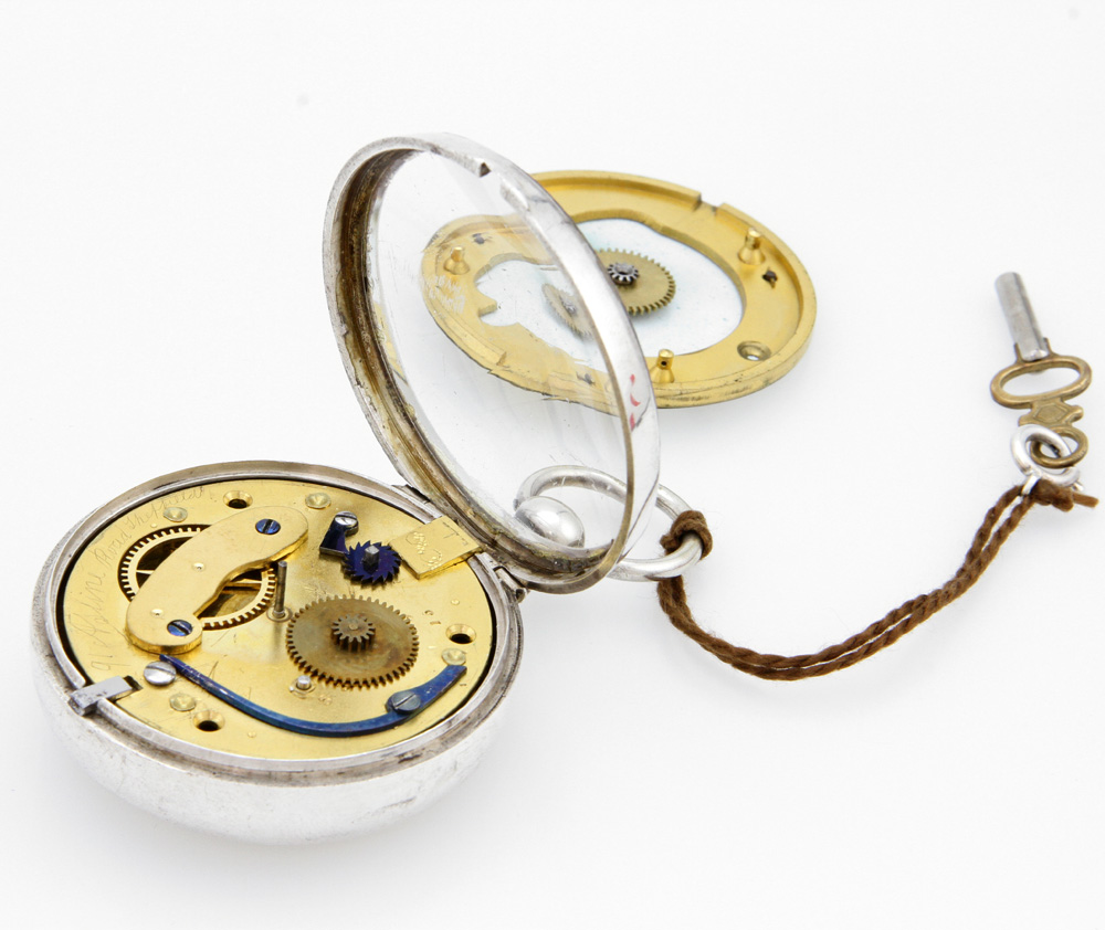 | Pocket watch, Lepine, early 19th century, Pocket watch, Lepine, early 19th century, silver case (British hallmarks), also overcase, movement signed 'Bothamley Boston', No. 53915. 'Bothamley Boston', no. 53915. White enamel dial with Roman numerals (damaged!).