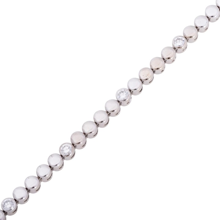 zus. ca. 0,50 ct, ca. LGW(I-J)/VS, WG 18K, 11,8 g, L: ca. 17,5 cm, 20. Jh., leichte Tragespuren, mit Kastenschloß und 2 Sicherheitsachten.