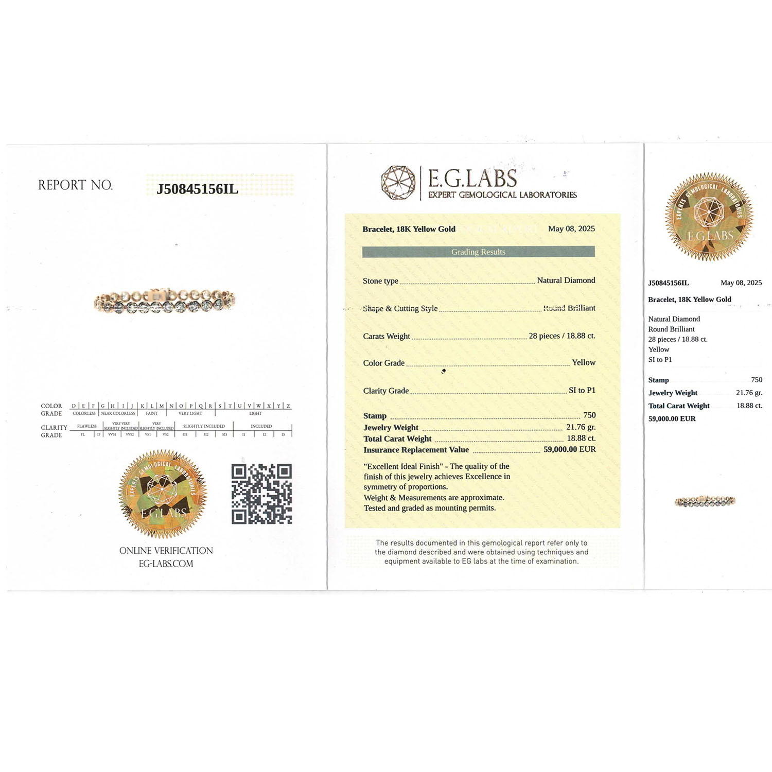 YELLOW/SI-PI, GG 18K, 22 g, L: 19,5 cm, WBW: 59.000 €, 21. Jh., neuwertig. E.G.LABS Zertifikat J50845156IL anbei.