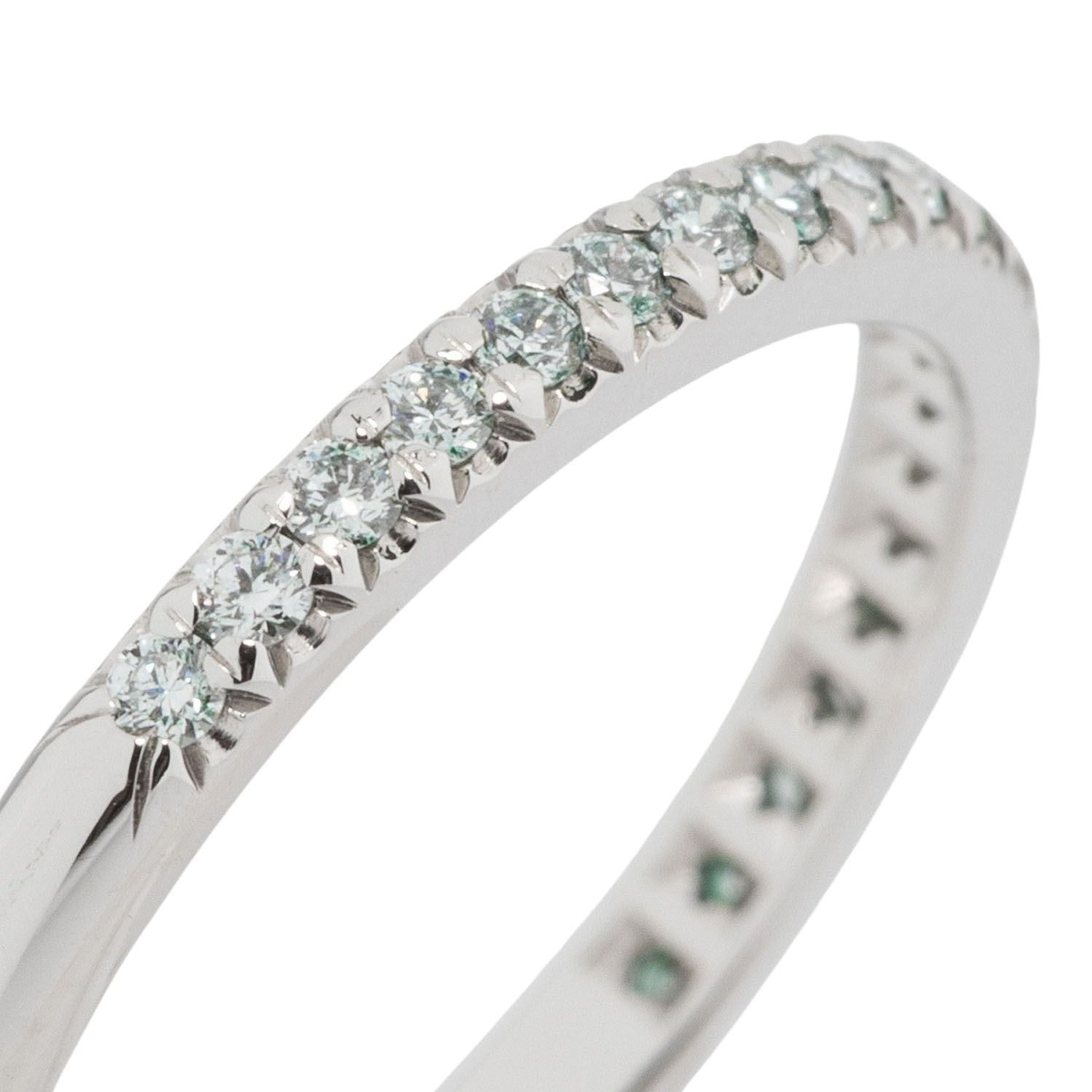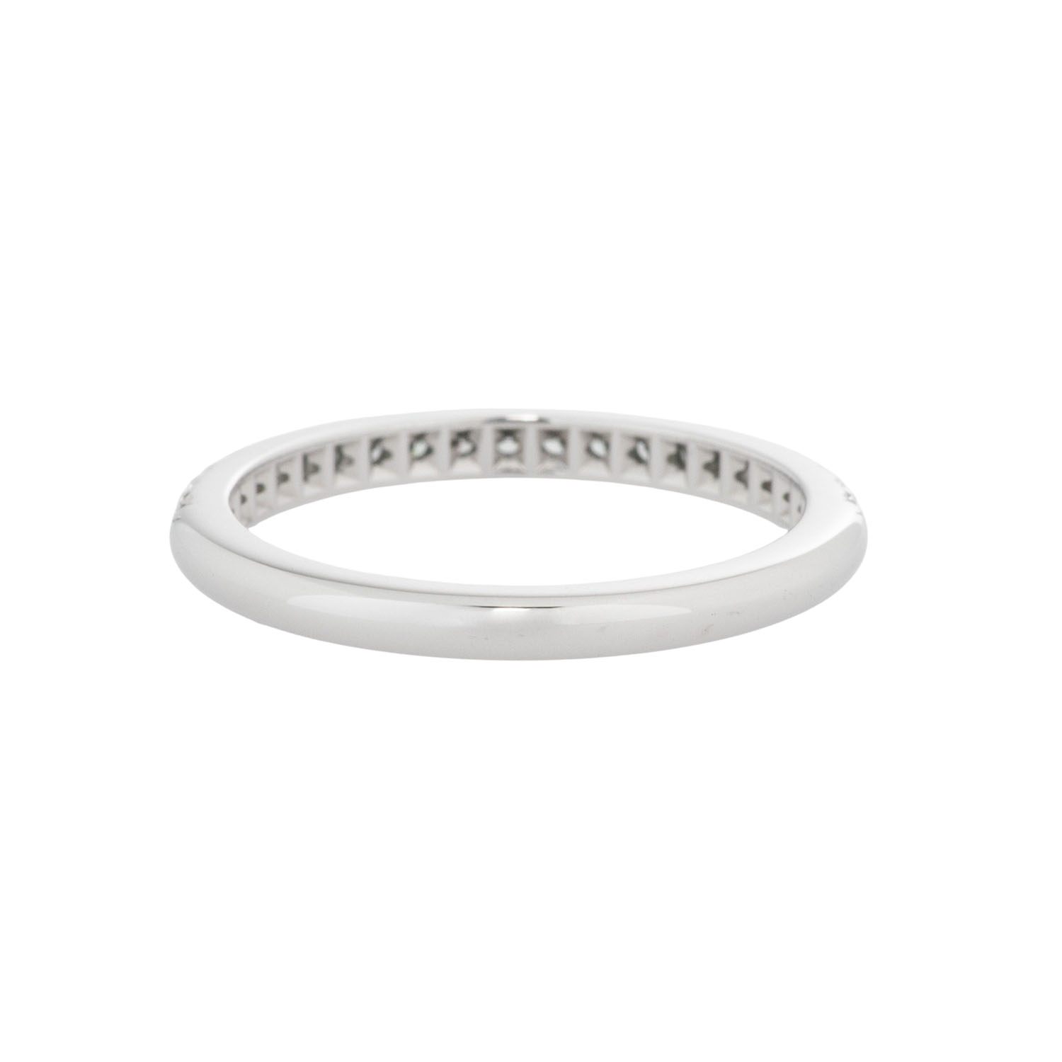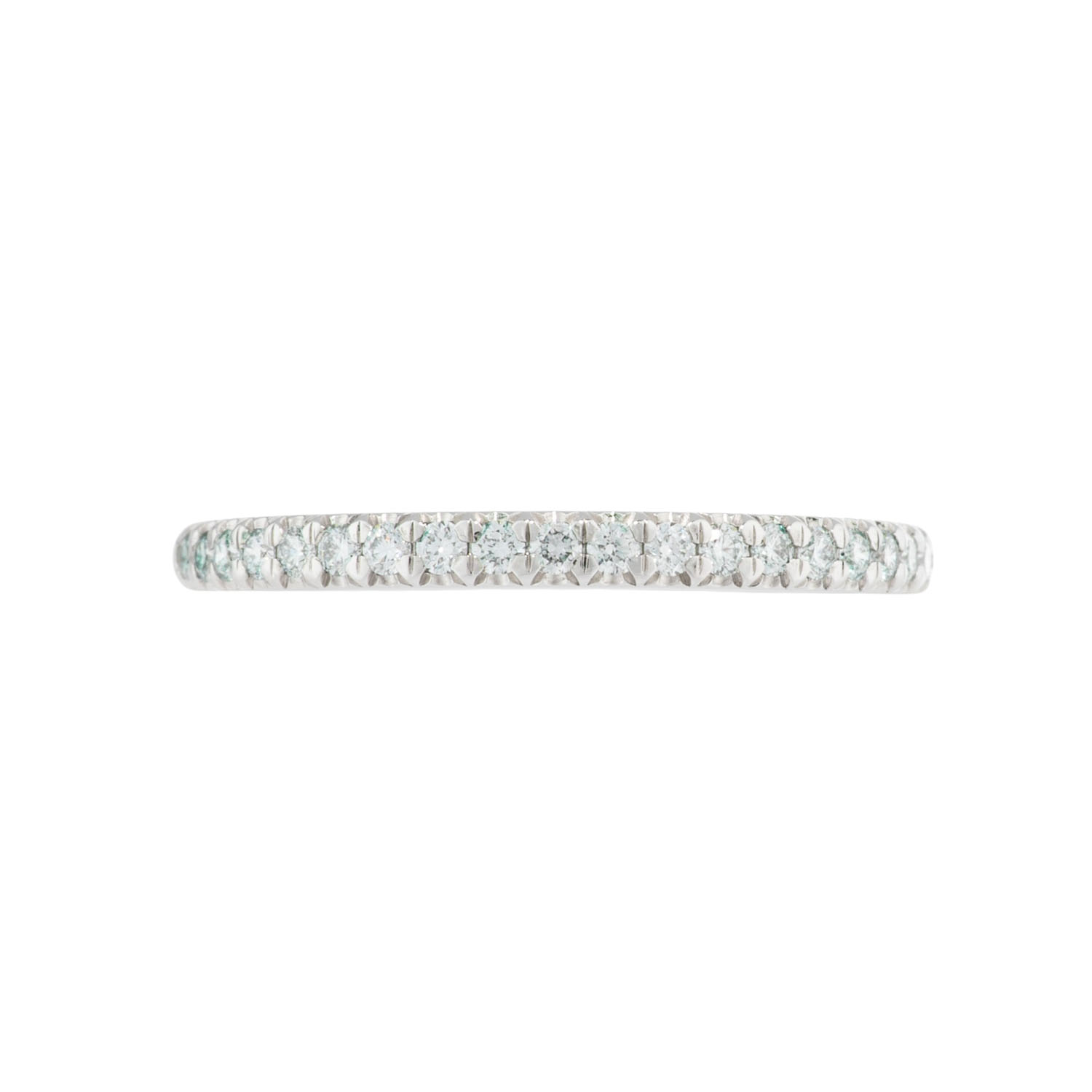 zus. ca. 0,21 ct, ca. WEISS(H)/VS, PT 950, 2,9 g, RW: 51, B: 2 mm, 21. Jh., minimale Tragespuren, Zubehör: Tiffany-Originaletui, Tiffany-Kaufbeleg.