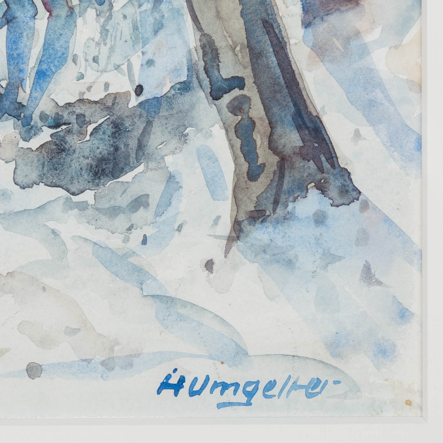 unten rechts signiert: 'H. Umgelter', Aquarell auf Papier, hinter Passepartout montiert. HxB Sichtmaß: ca. 37,5 x 30 cm (HxB Rahmen: ca. 56 x 48 cm). Altersspuren. Mit verglastem Rahmen (Altersspuren).