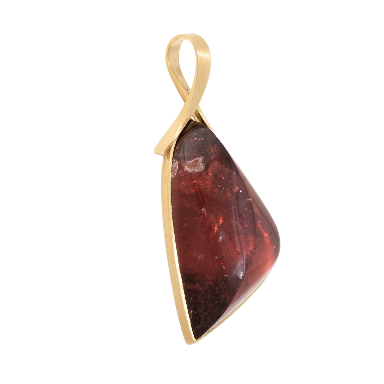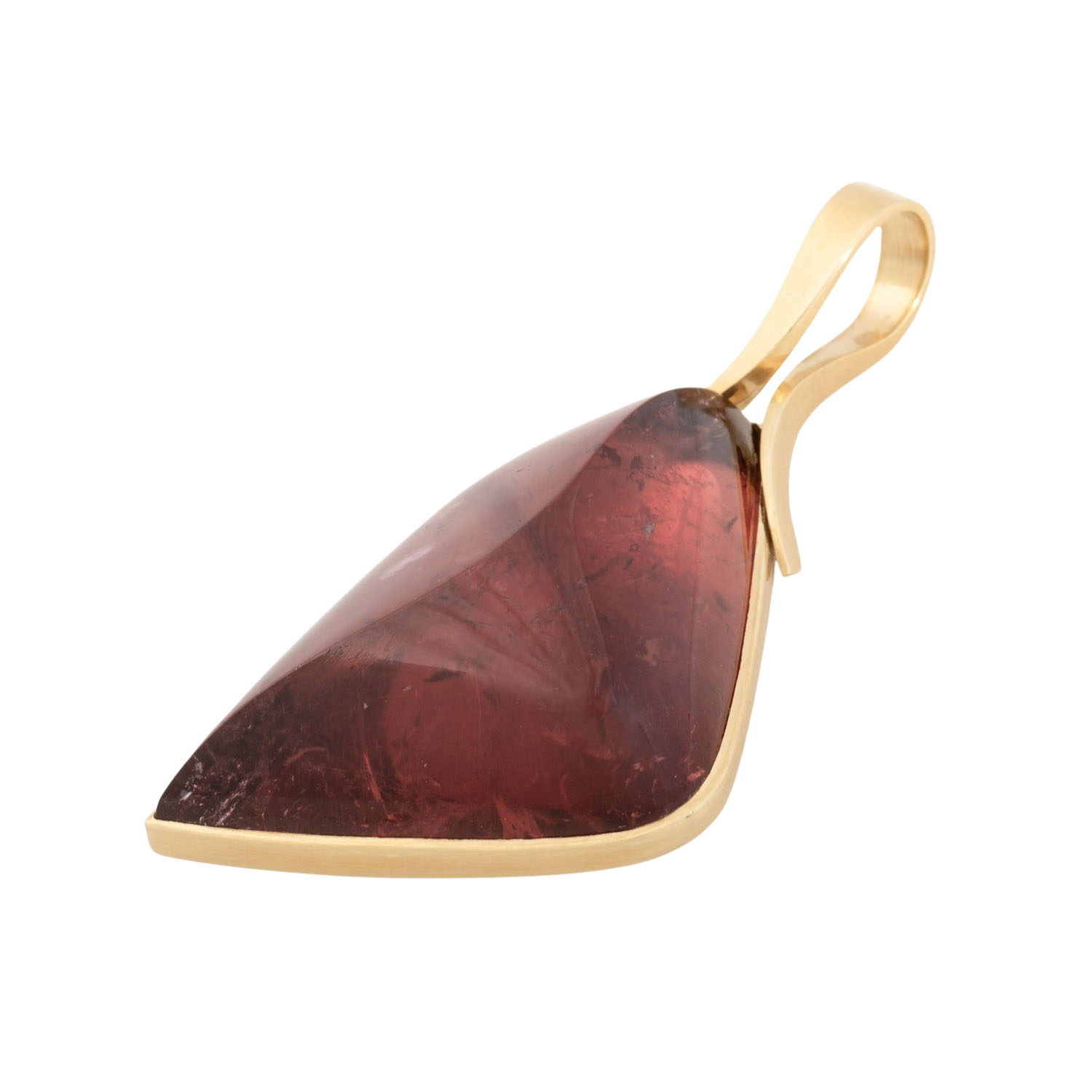 im Cabochon-Fancy-Schliff ca. 5x3x1,5 cm, GG 18K, 40 g, L: 7 cm, Ende 20. Jh., Turmalin seitlich kleine Bestoßung am Fassrand, ansonsten guter Erhalt, HANDARBEIT. (9)