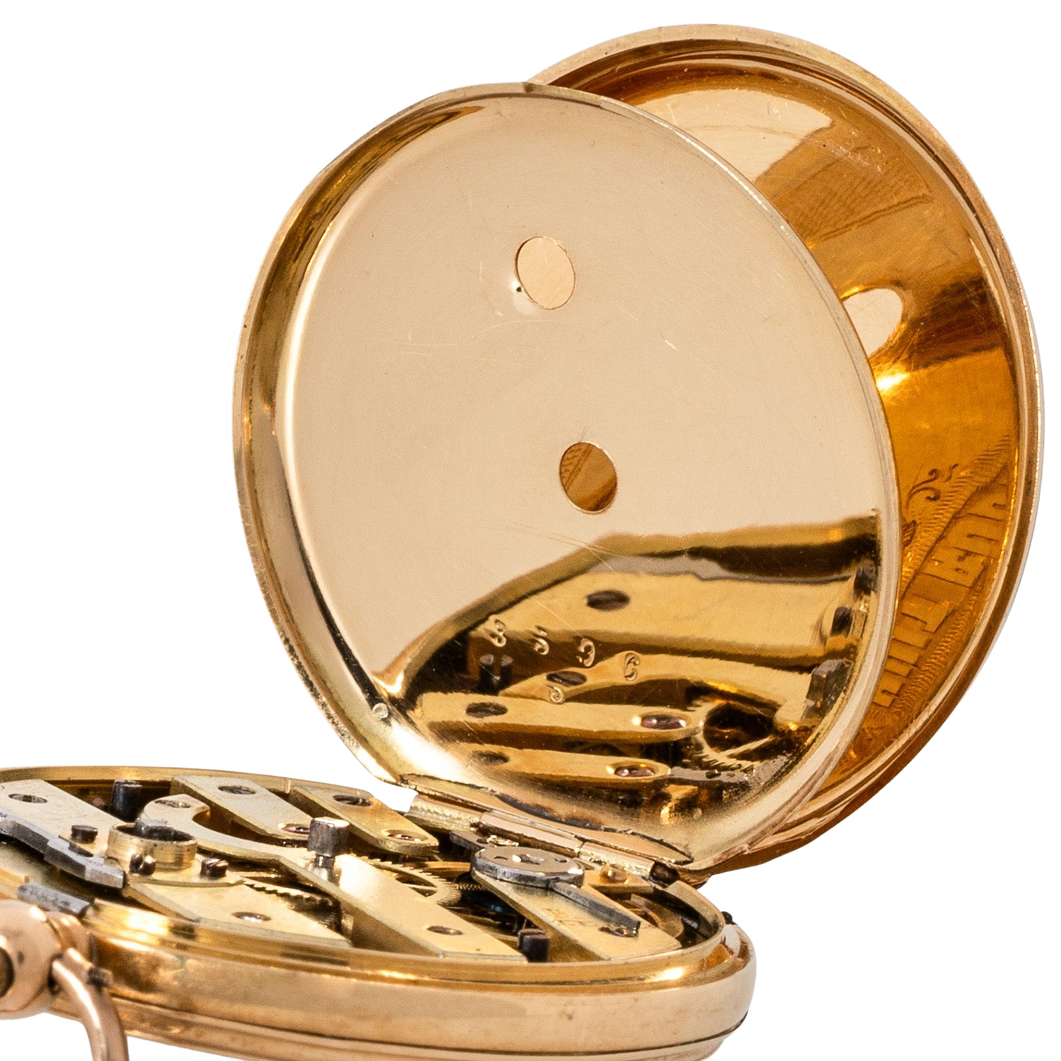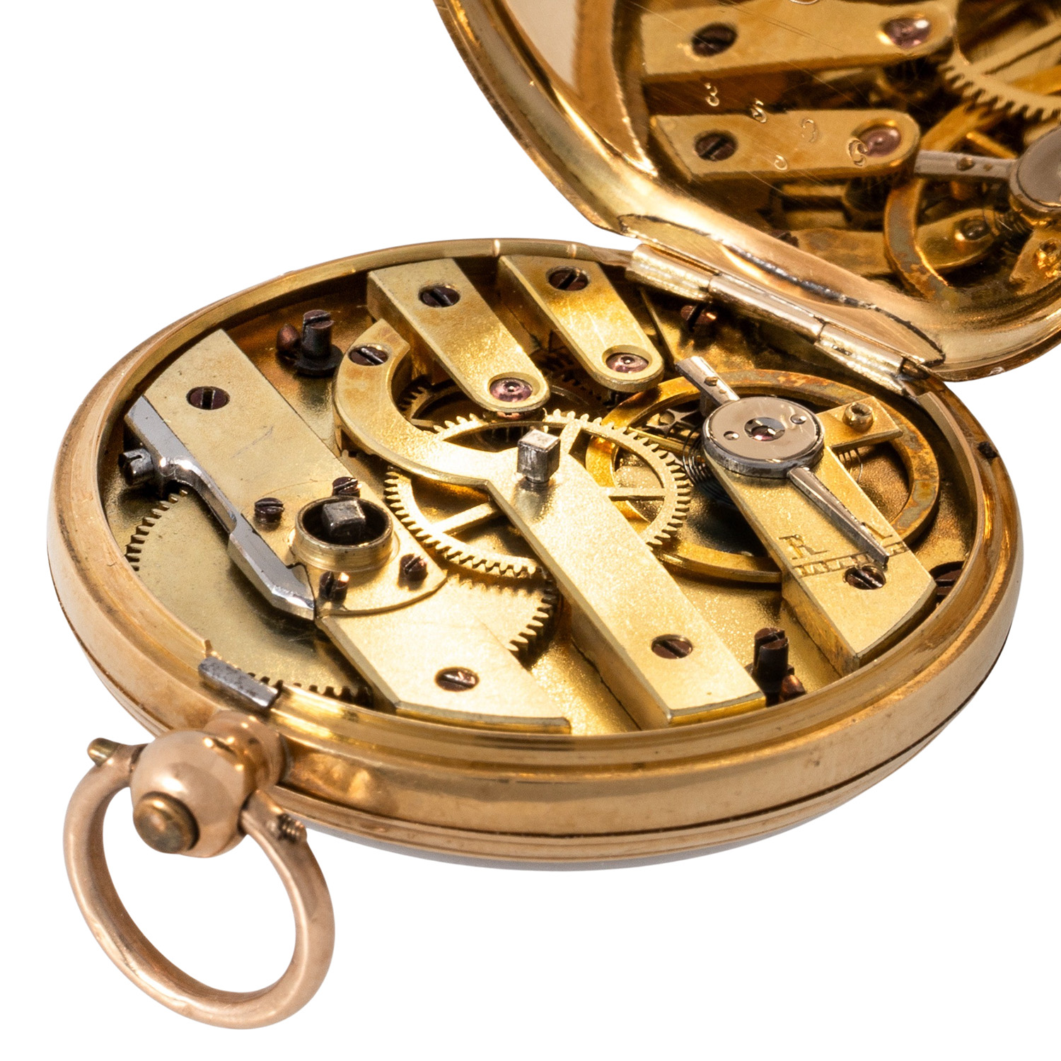 Antike, offene Taschenuhr mit Viertelrepetition & Musikspielautomat.
