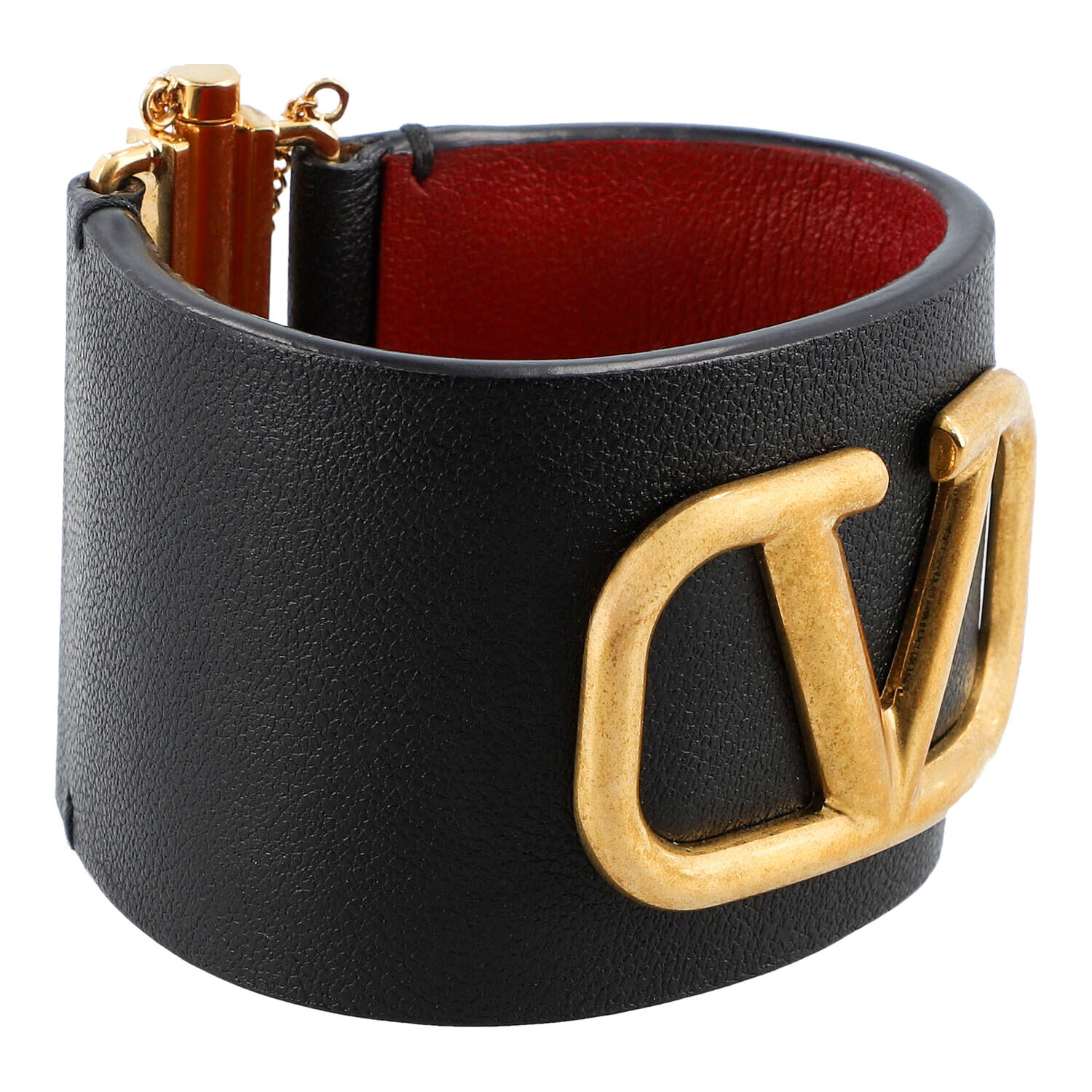 Lederarmband in Schwarz mit V-Logo Applikation und Steckverschluss. Breite ca. 4,5cm. Guter Erhalt.