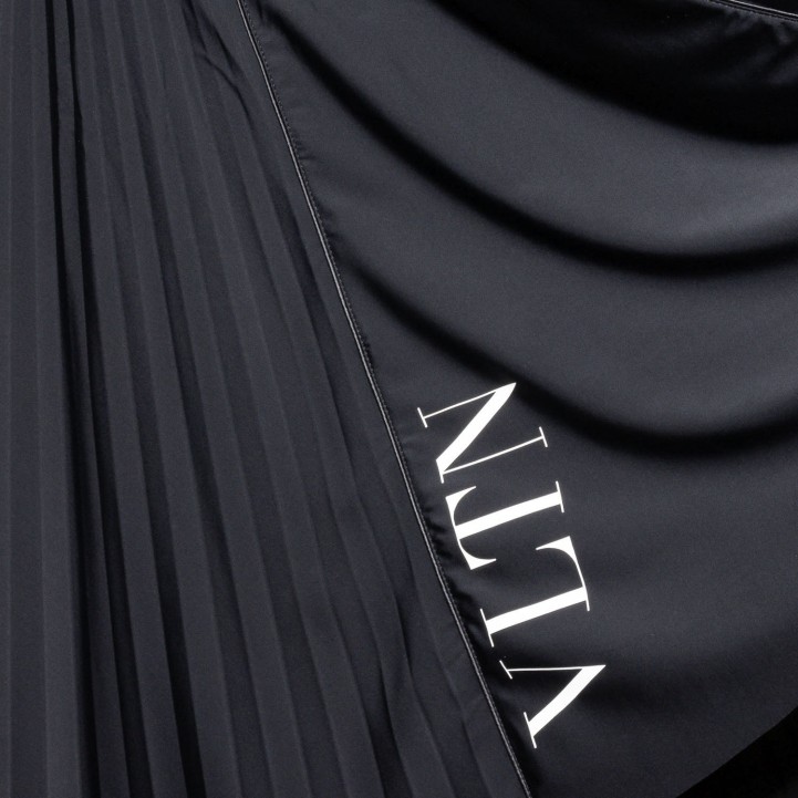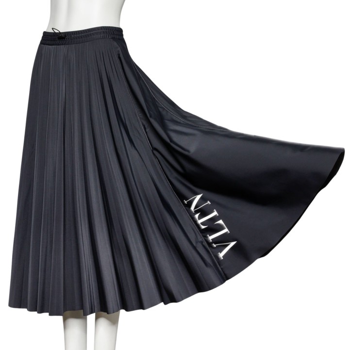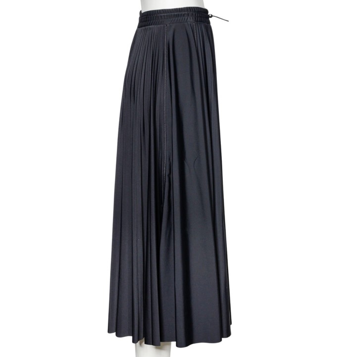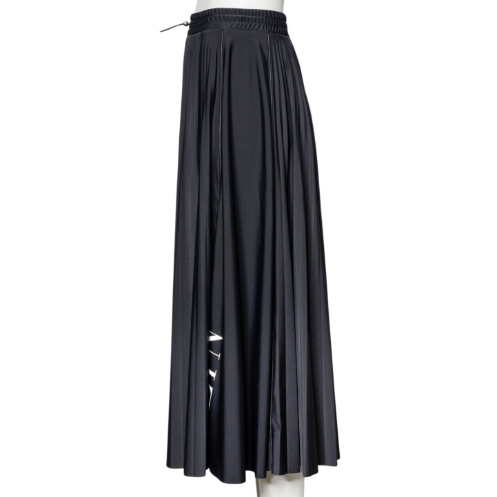 Schwarzes Falten-Modell im sportlichen Design mit weißem Logo-Dekor und elastischem Bund. Insgesamt in gutem Zustand.