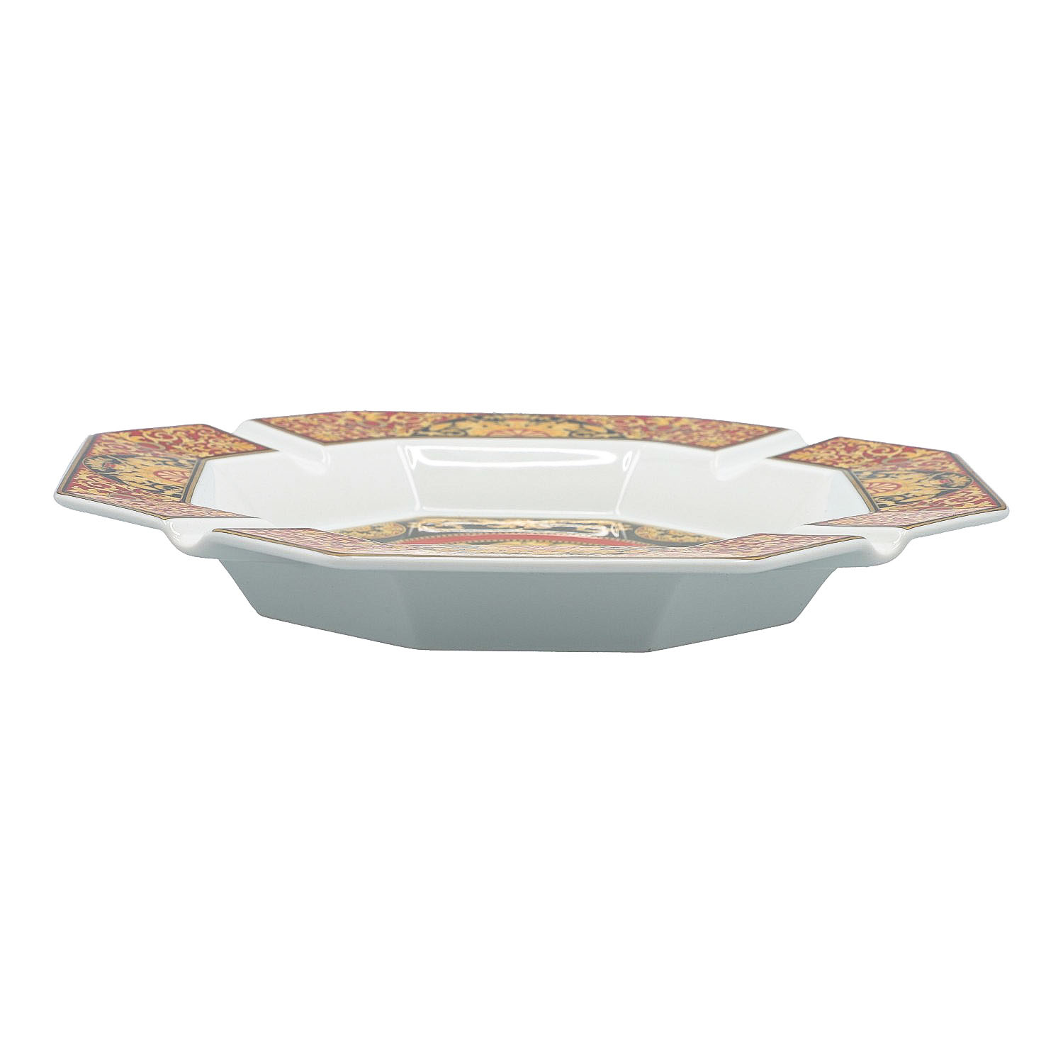 Aus weißem Porzellan mit klassischer Medusa Musterung in Rot/Gold und Schwarz. Sehr guter Erhalt. Maße ca. 23x23cm.