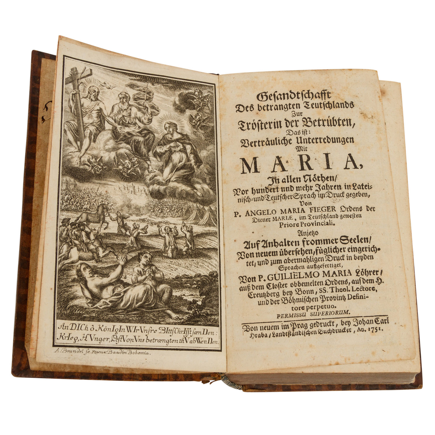 Fieger, Angelus Maria, Gesandtschafft des bedrangten Teutschlands zur Trösterin der Betrübten Das ist Verträuliche Unterredungen mit Maria in allen Nöthen, HxW: 13/9 cm. Signs of age.