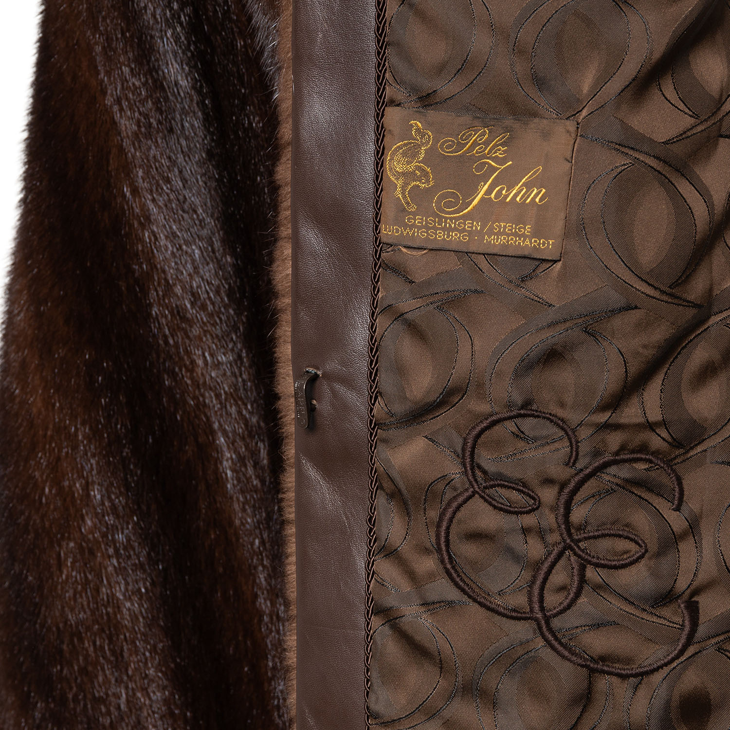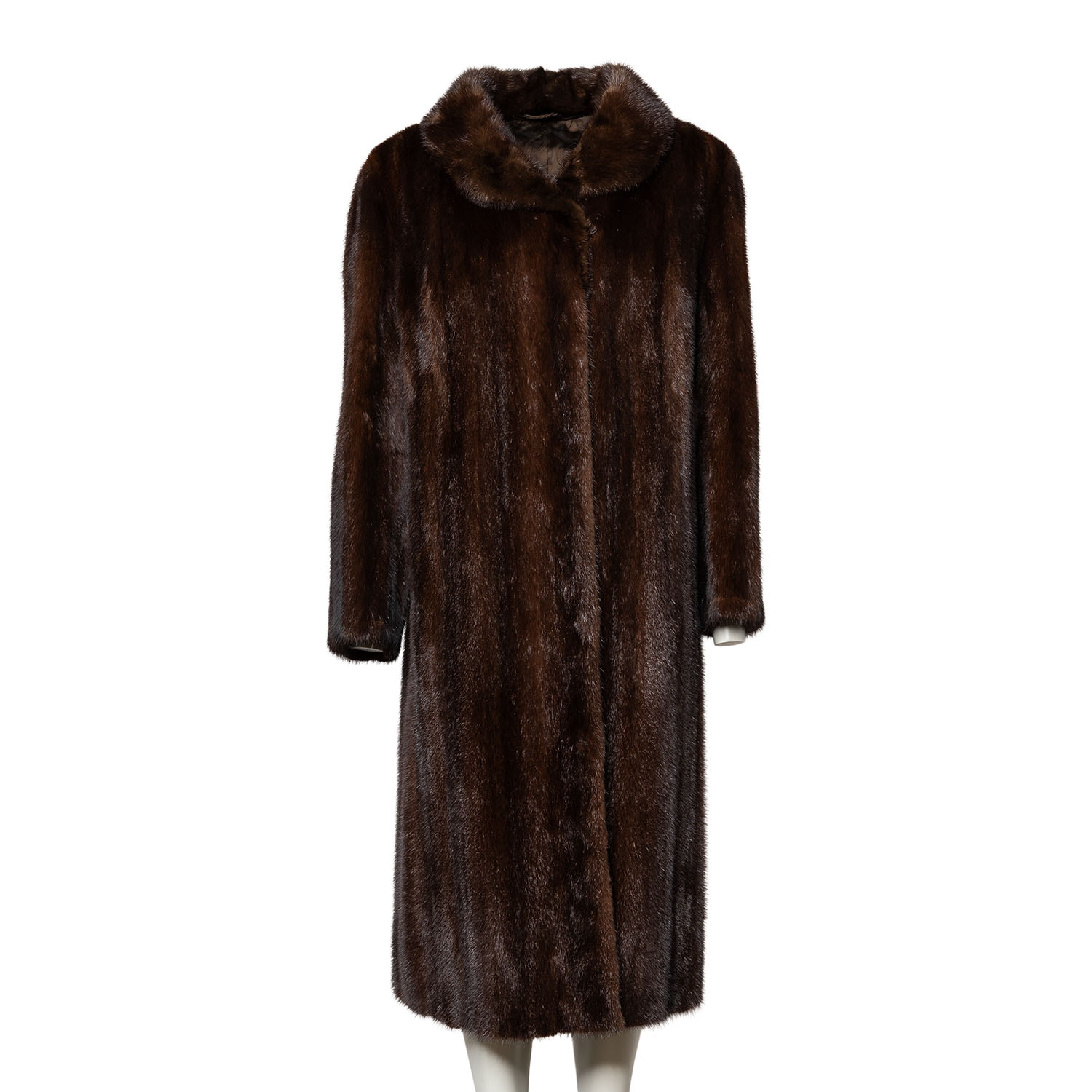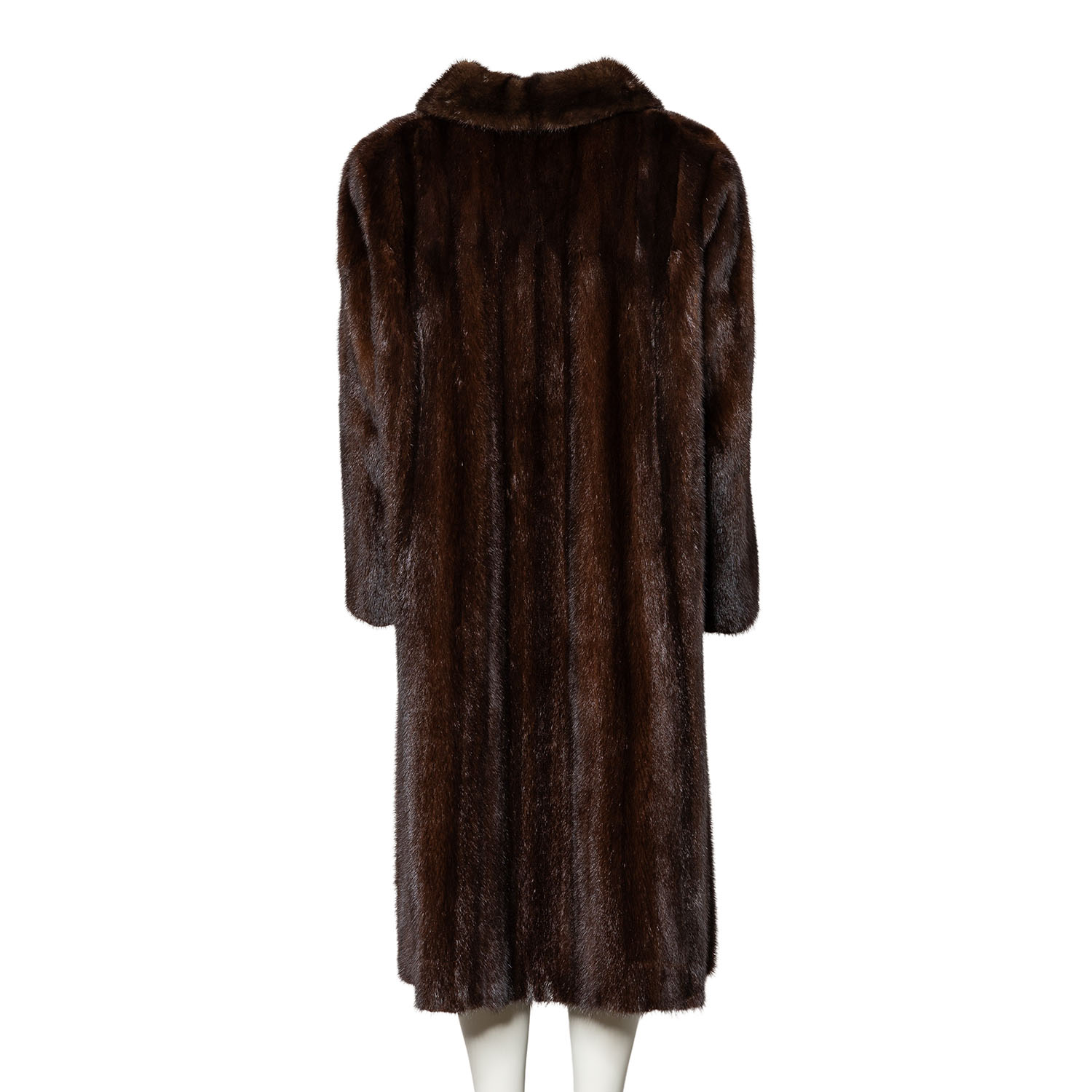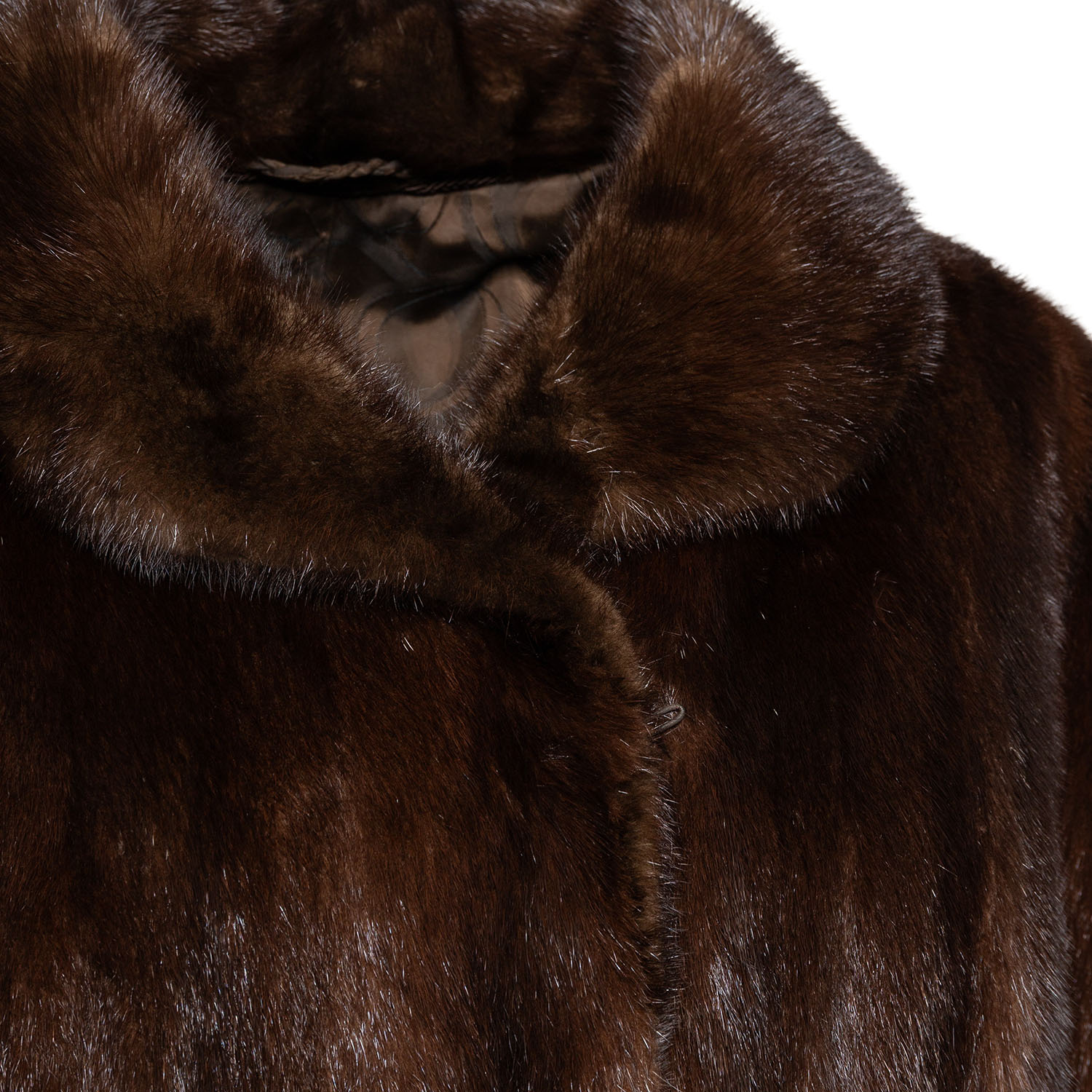 Braune Nerzfelle mit Umlegekragen, Eingrifftaschen sowie Haken- und Ösenverschluss. Tragespuren vorhanden.