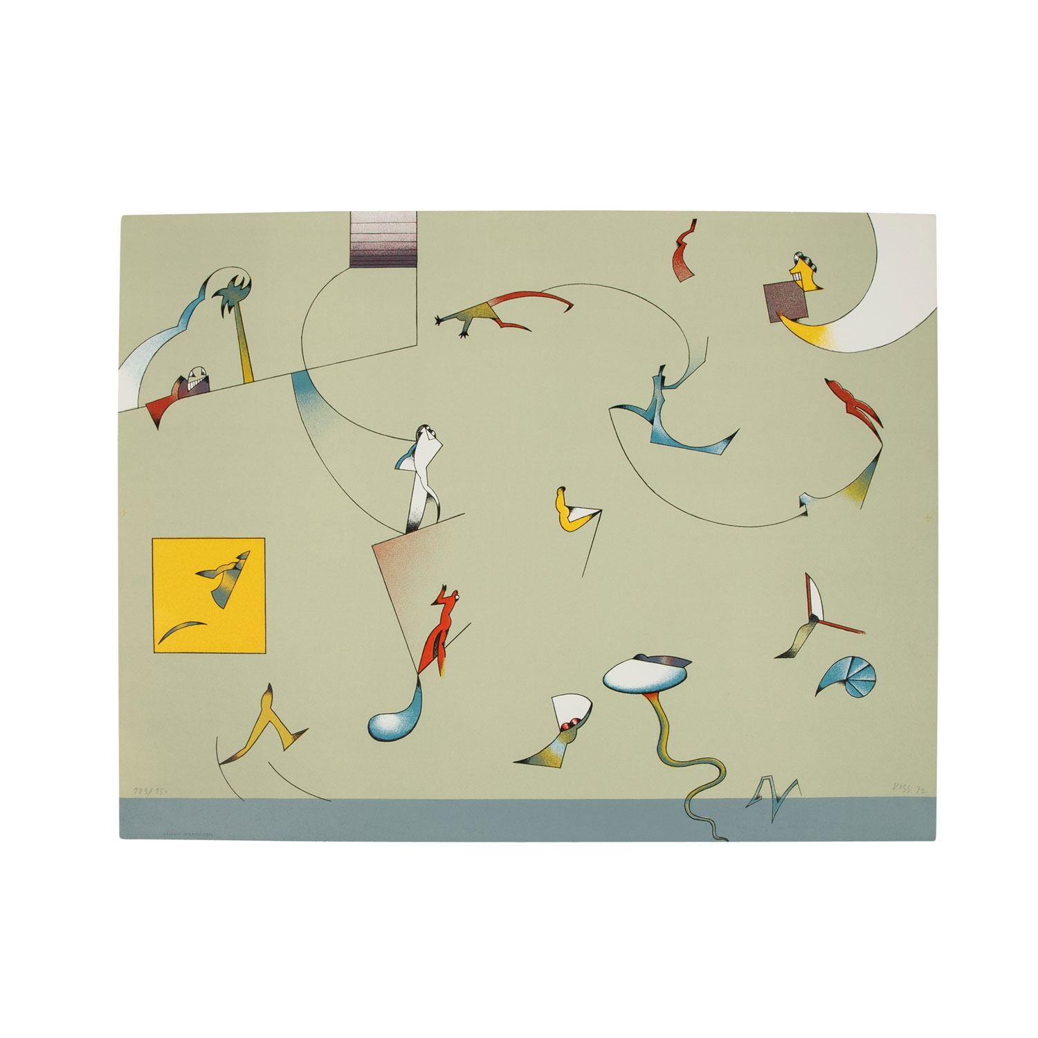 Farblithographie/Papier, u.re. mit Bleistift von Hand signiert und datiert, u.li. mit Bleistift nummeriert 123/150, darunter Trockenstempel 'GRAPHIK INTERNATIONAL', HxB: Blatt ca. 50x65 cm. Knicke, Altersspuren.