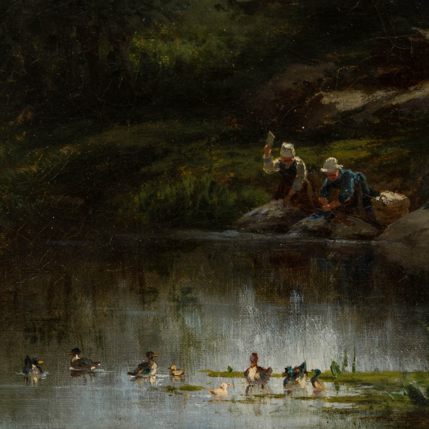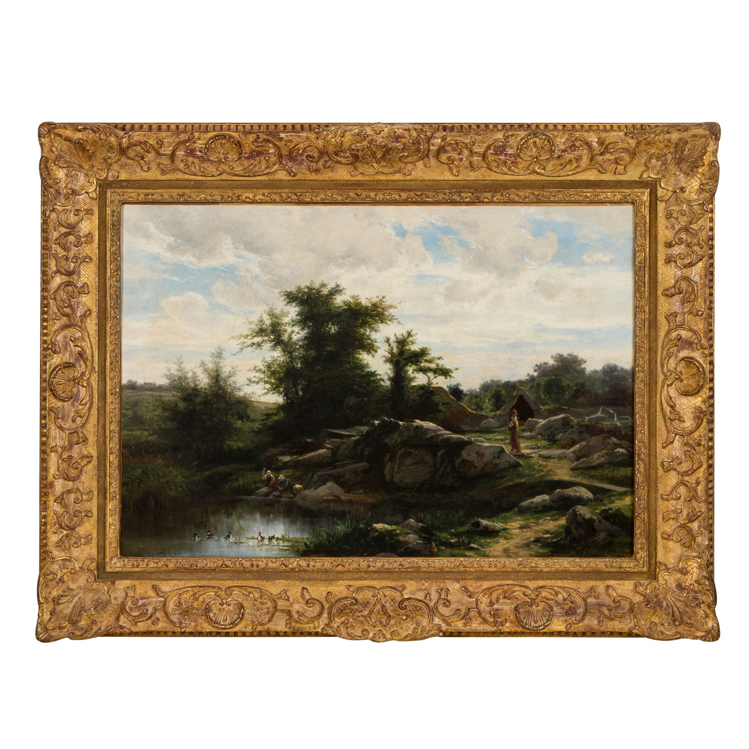 WEBER, THEODOR ALEXANDER (1838 - 1907), 'Landschaft mit Wäscherinnen am Teich',