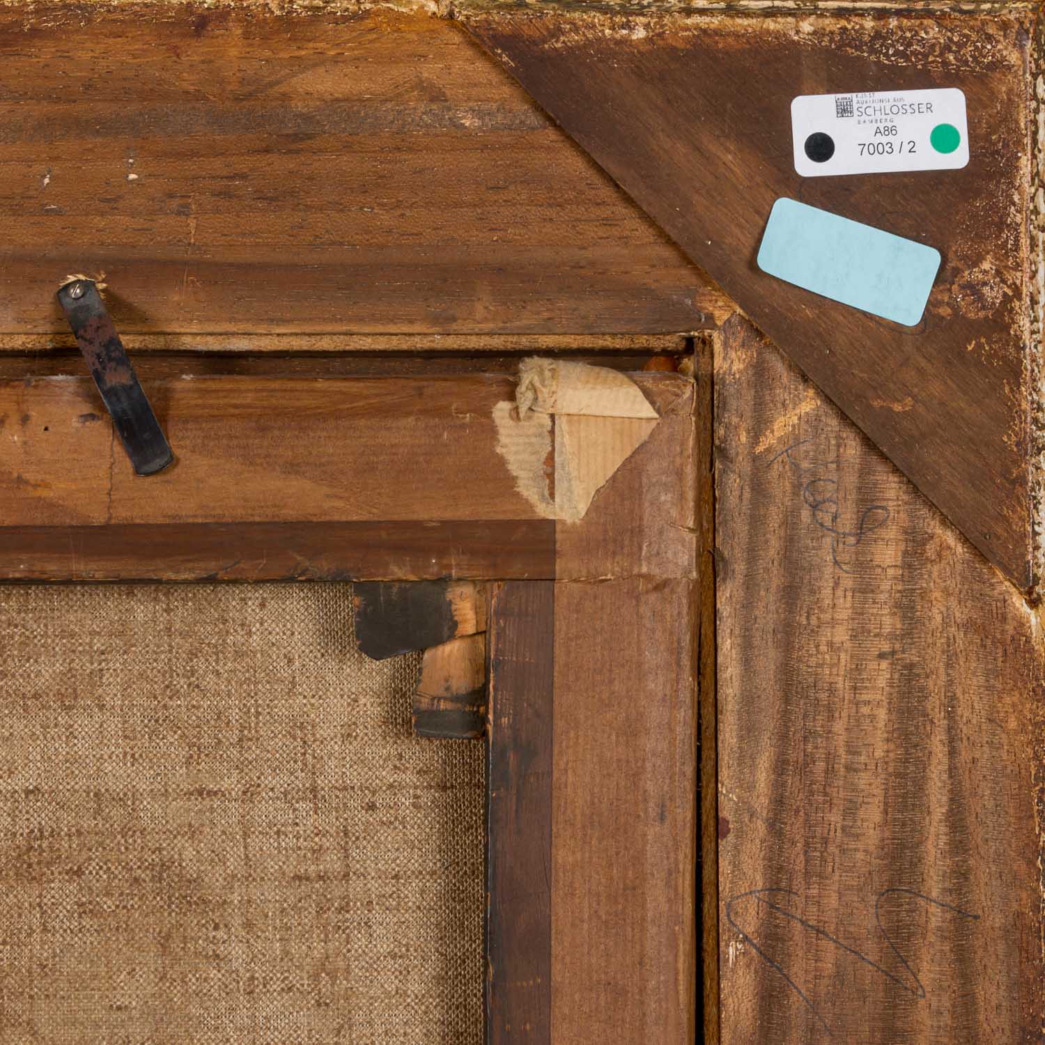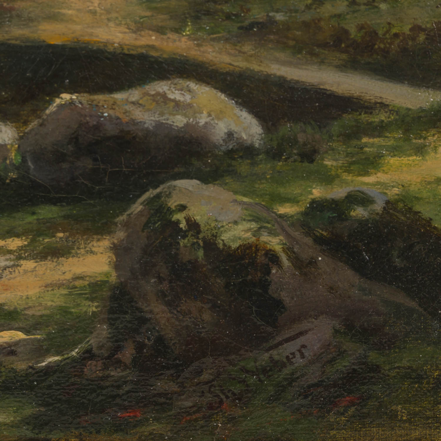 signiert unten rechts: 'Th. Weber'. Öl auf Leinwand, doubliert. HxB: ca. 49,5 x 71,5 cm (HxB Rahmen: ca. 70,5 x 92 cm). Alters- und Beriebsspuren, Craquelé, restauriert. Mit Rahmen (Altersspuren).