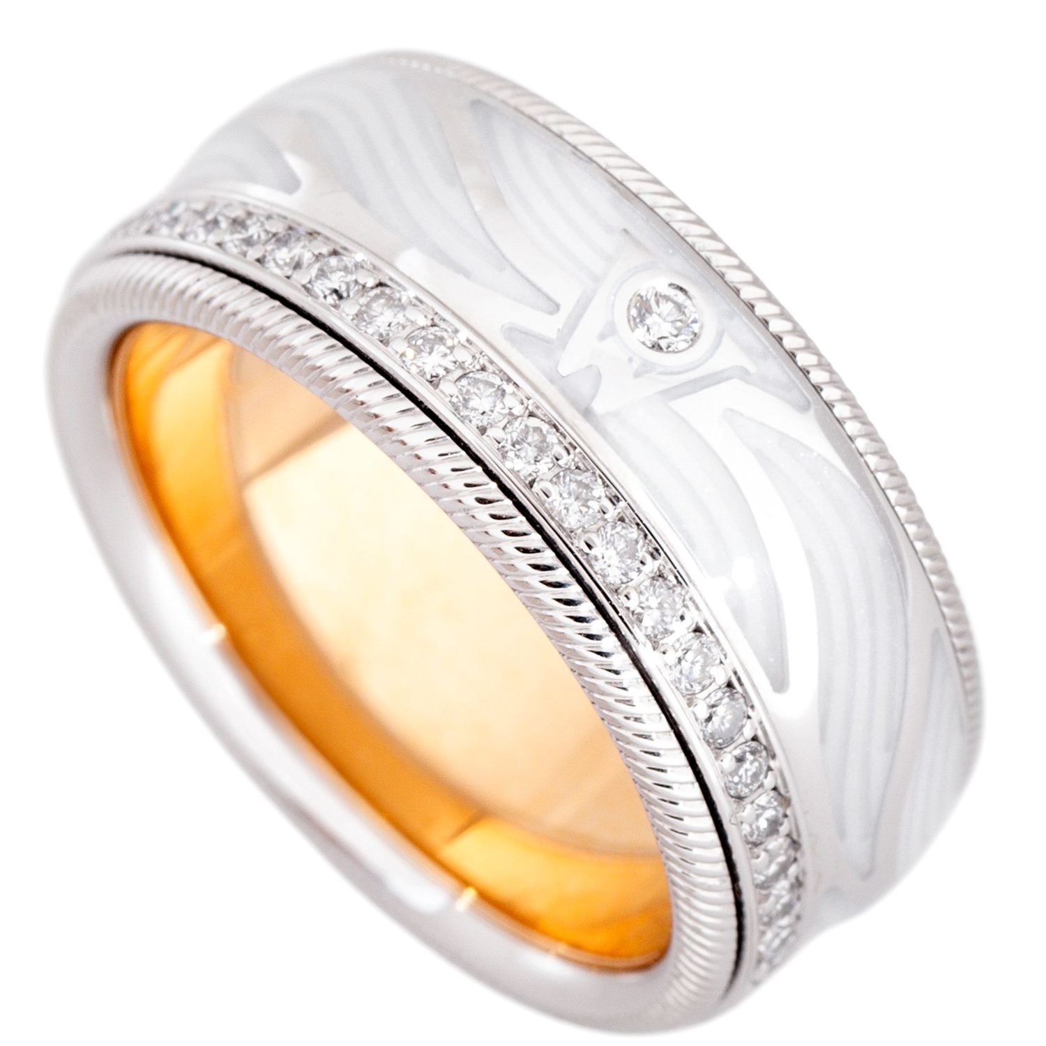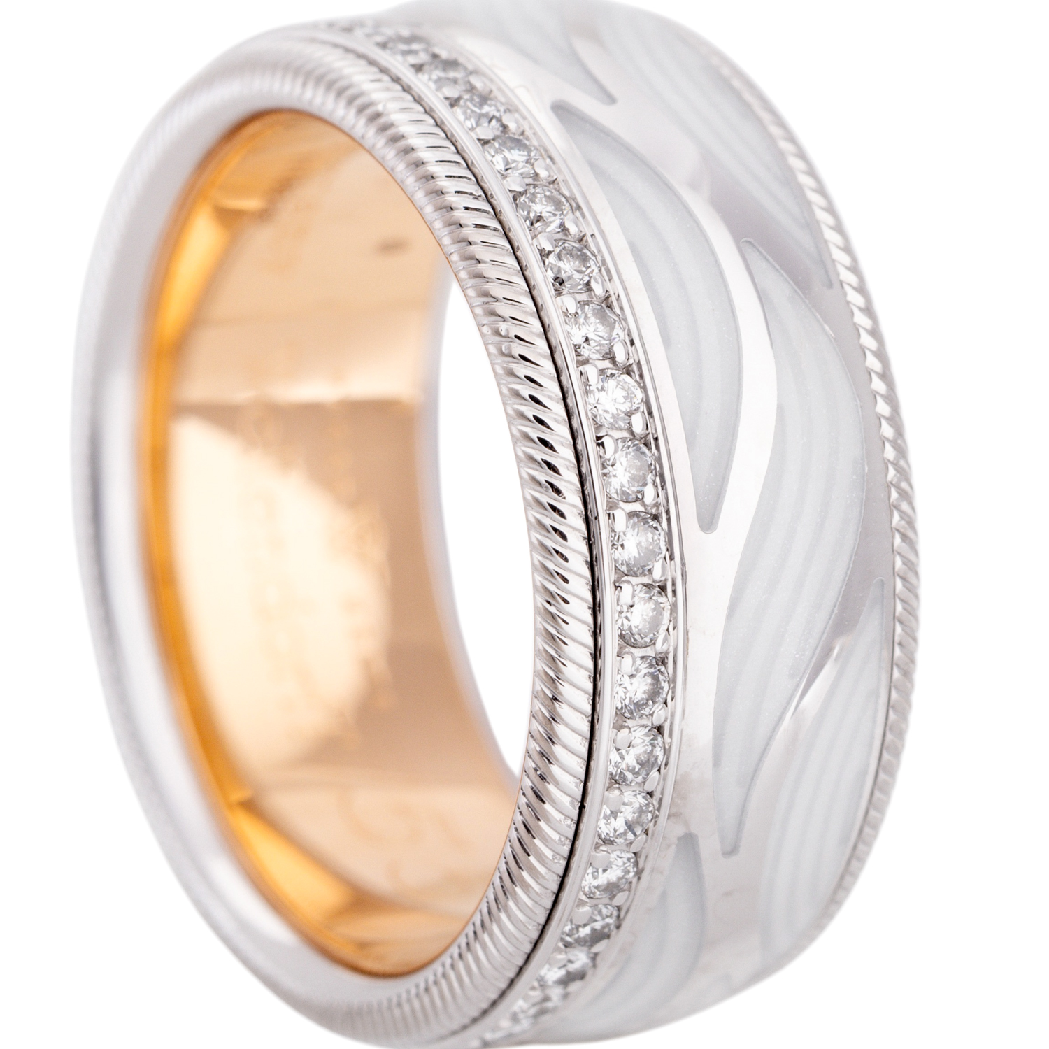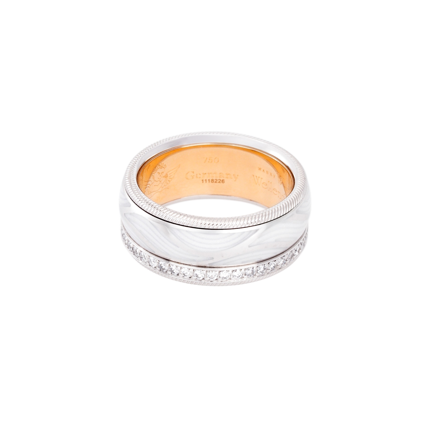 WBW: ca. 19.000 €, Brillanten zus. ca. 0,47 ct, sehr gute Farbe u. Reinheit, 18K WG/GG, 14,9 g, RW: 55, 21. Jh., neuwertiger Zustand, inkl. Garantiekarte, Kaufbeleg (2013) u. Servicebeleg (2025).