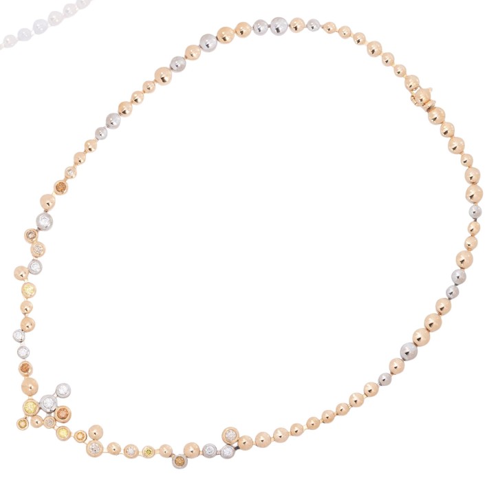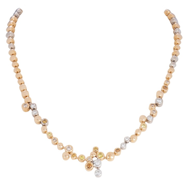 mit fancyfarbenen und farblosen Brillanten zus. 2,55 ct, RSG/WG 18K, 27,3 g, Länge 43 cm, 21. Jh, minimale Tragespuren, inkl. Wempe Zertifikat und Etui. NP vergleichbares aktuelles Stück (weniger Diamanten): 19.975 €. (6)