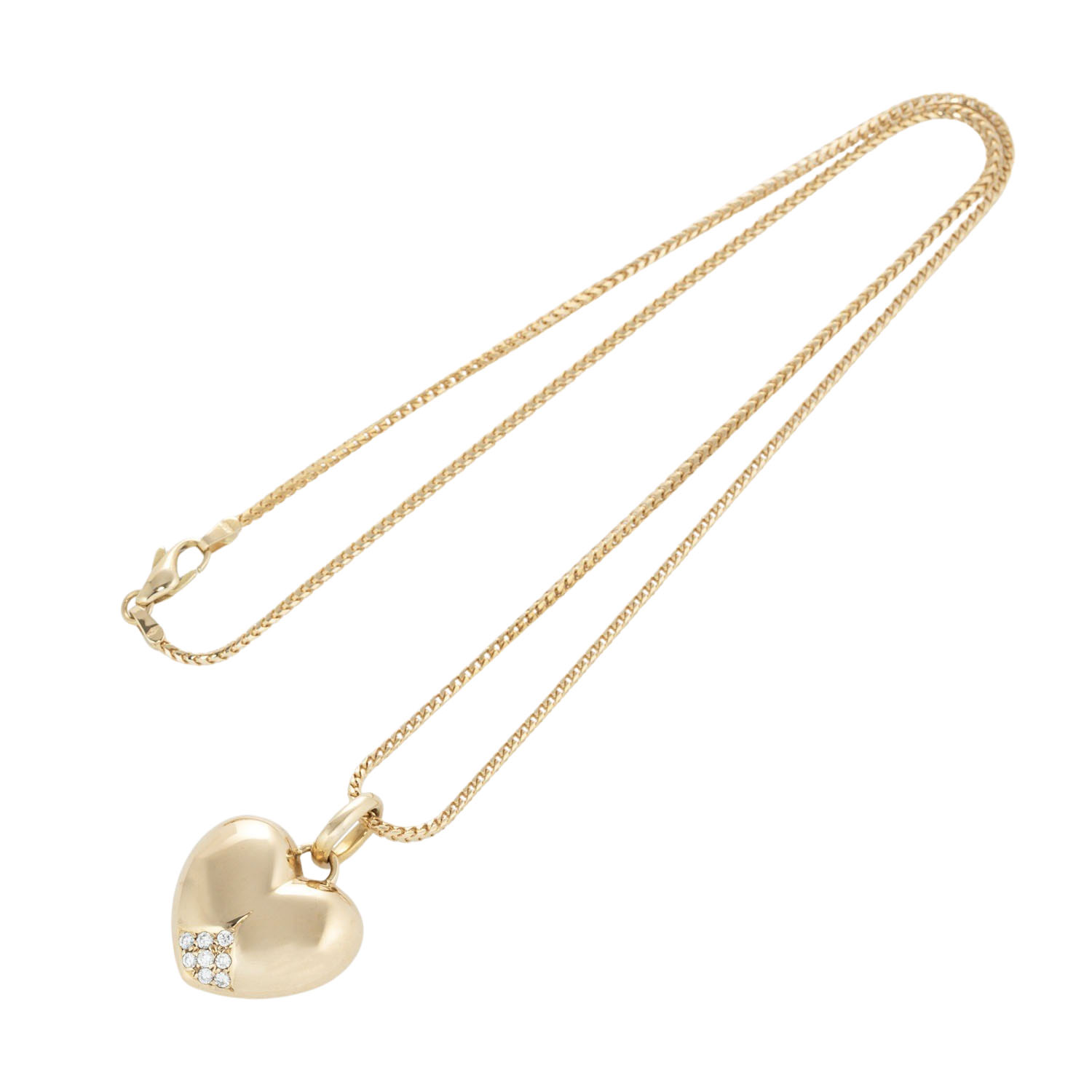 8 Brillanten, ges. ca. 0,12 ct, gute Farbe und Reinheit, GG 18K, ges. 14,2 g, L: 45 cm, B (Kette): 1,5 mm, L x B (AH): 29 x 21 mm, Ende 20. Jh., minimale Tragespuren.