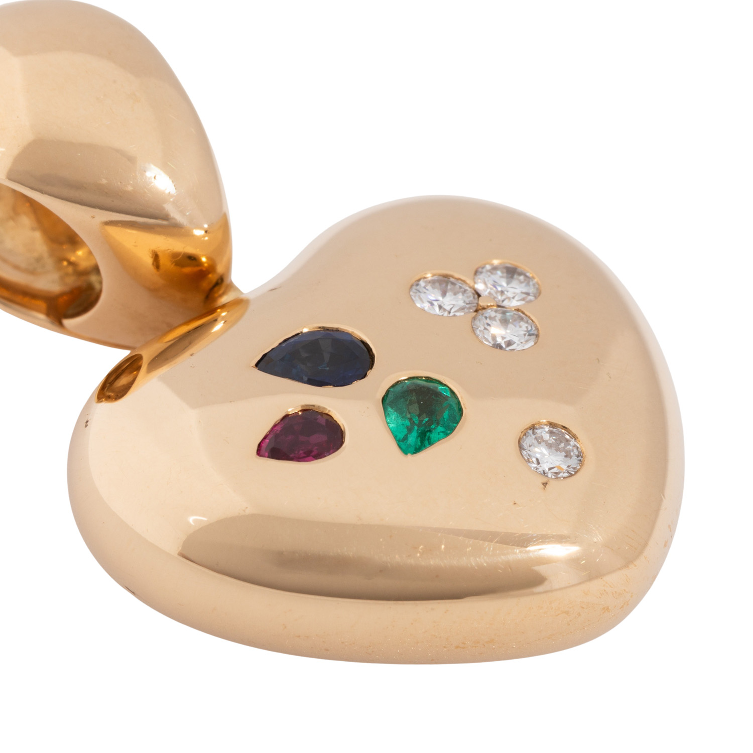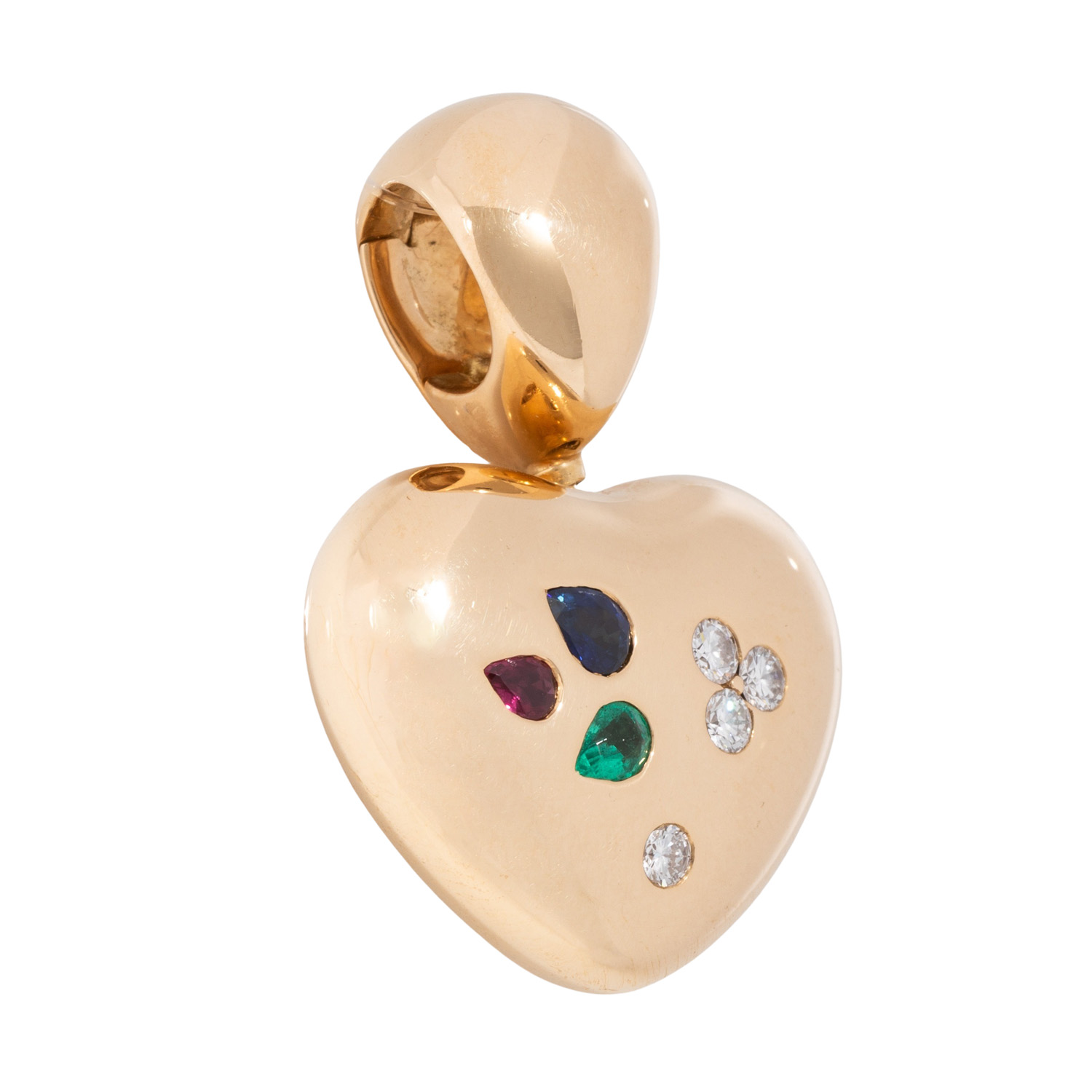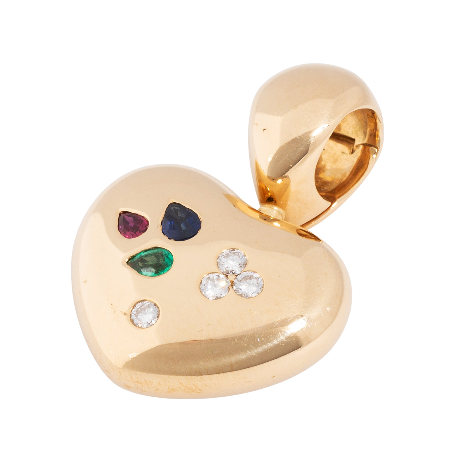 WEMPE Anhänger/Clip 'Herz' mit Rubin, Smaragd, Saphir und 4 Brillanten