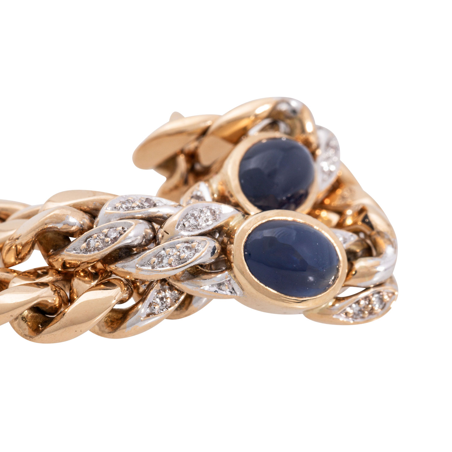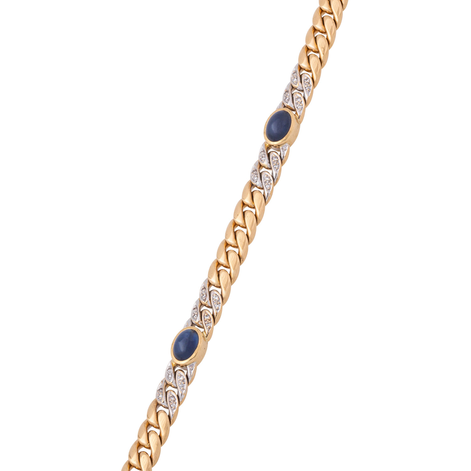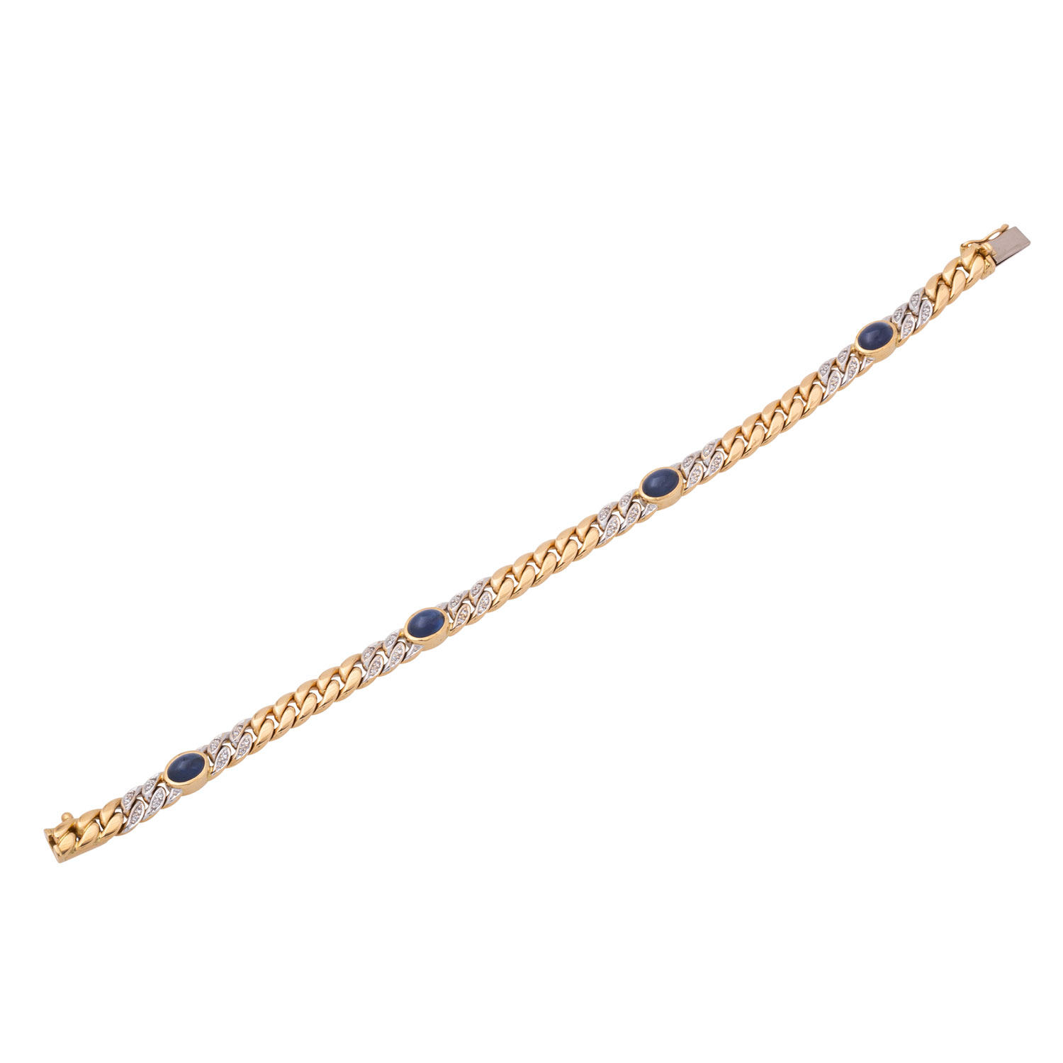 oval, ca. 5 x 6,5 mm, 64 Brillanten, zus. ca. 0,16 ct, GG/WG 18K, 26,5 g, L: 19 cm, B: 6 mm, Kastenschloß mit Sicherungsacht, Ende 20. Jh, minimale Tragespuren.