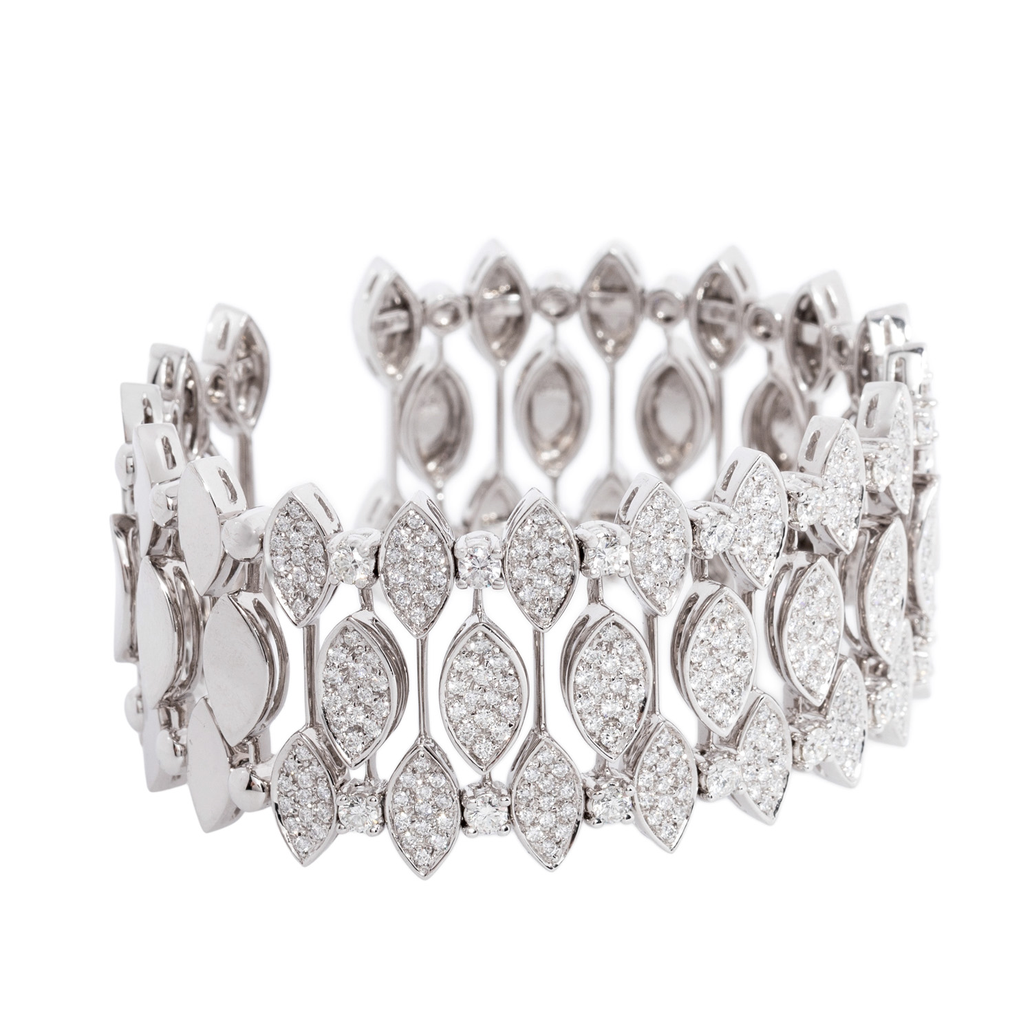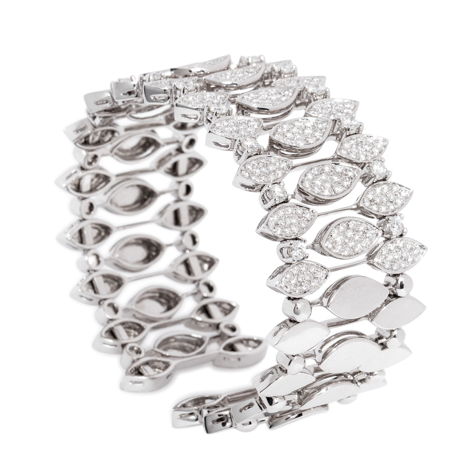 362 Brillanten von zus. ca. 5,0 ct, sehr gute - gute Farbe und Reinheit, WG 18K, 82,1 g, Innenumfang ca. 16 cm, Tragespuren, 20./21. Jh., Herstellername und Seriennummer 5759.
