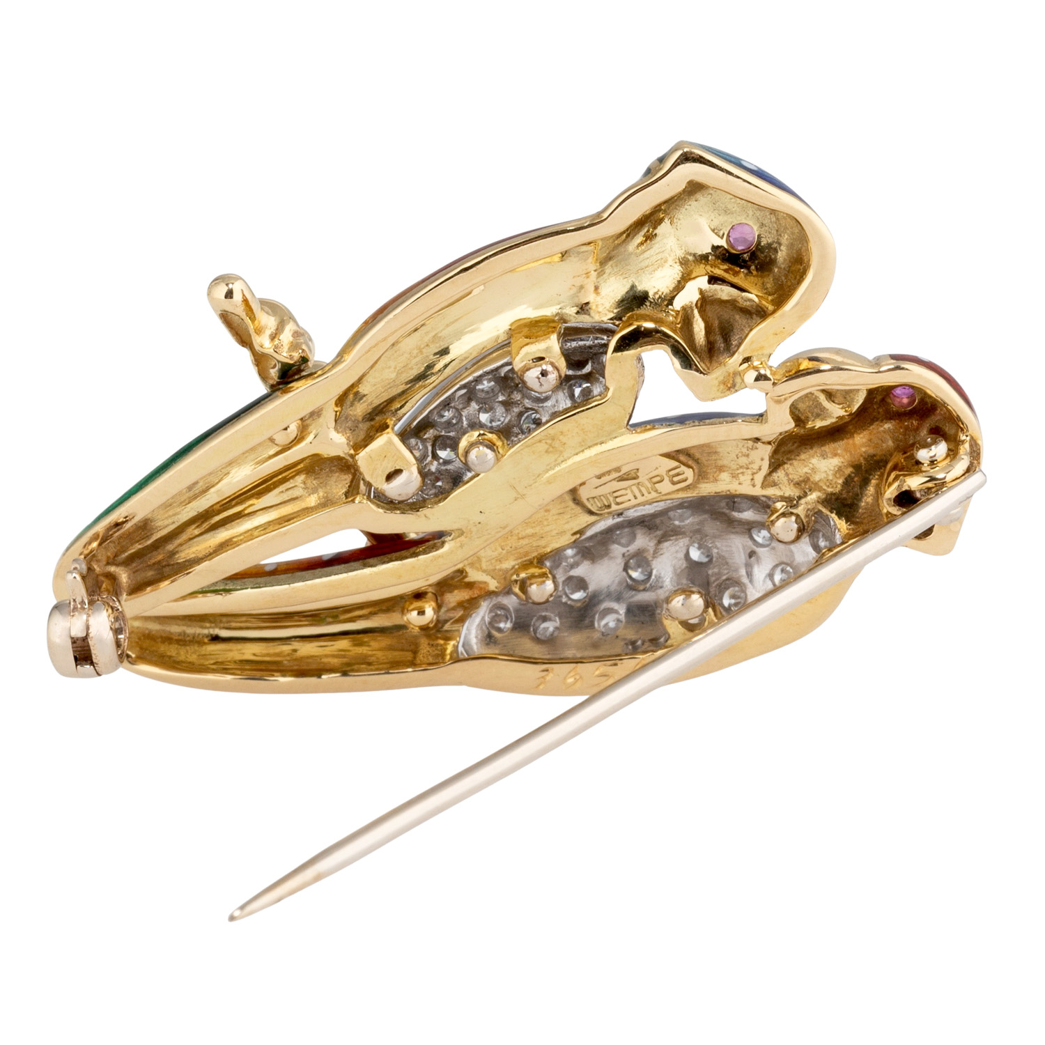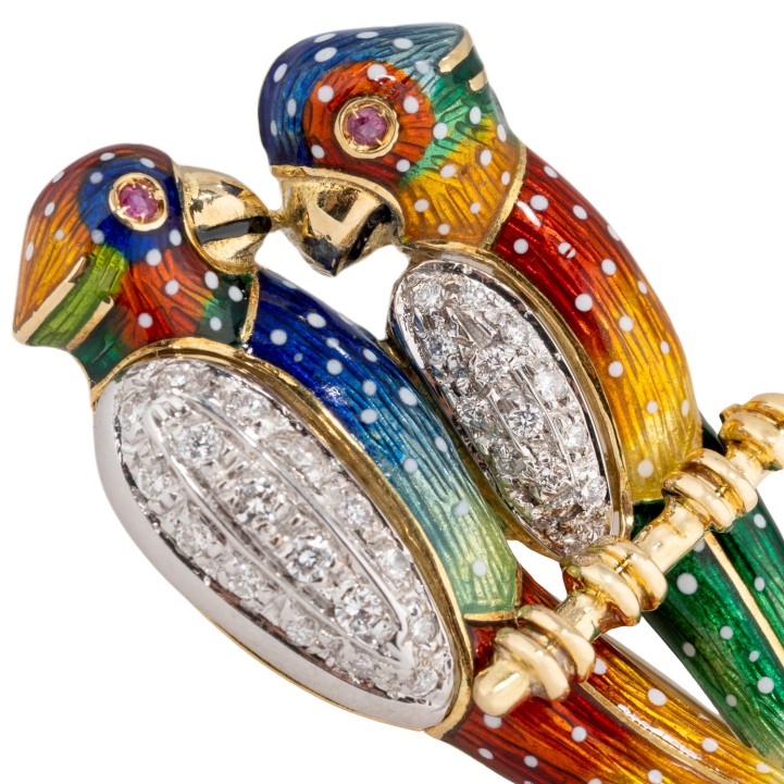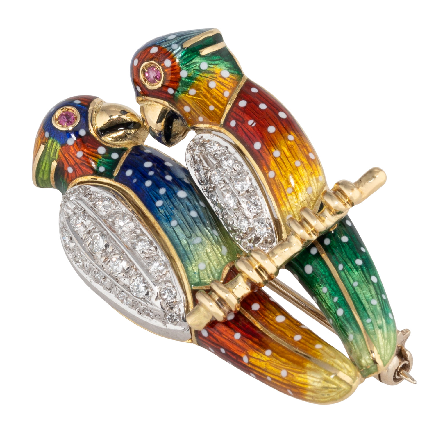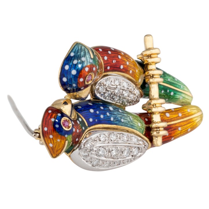 WEMPE Brosche 'Papageien' mit 2 Rubinen,