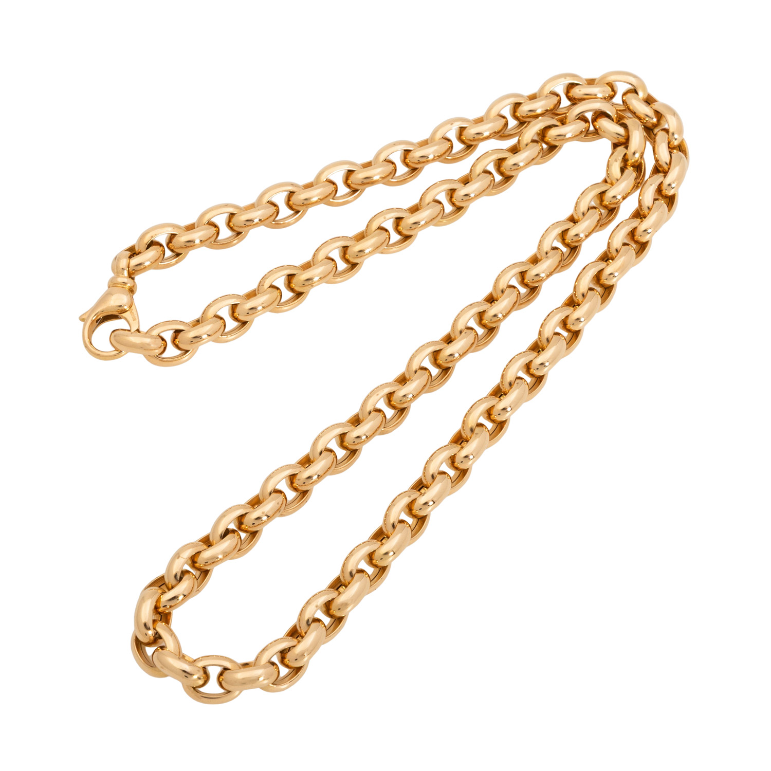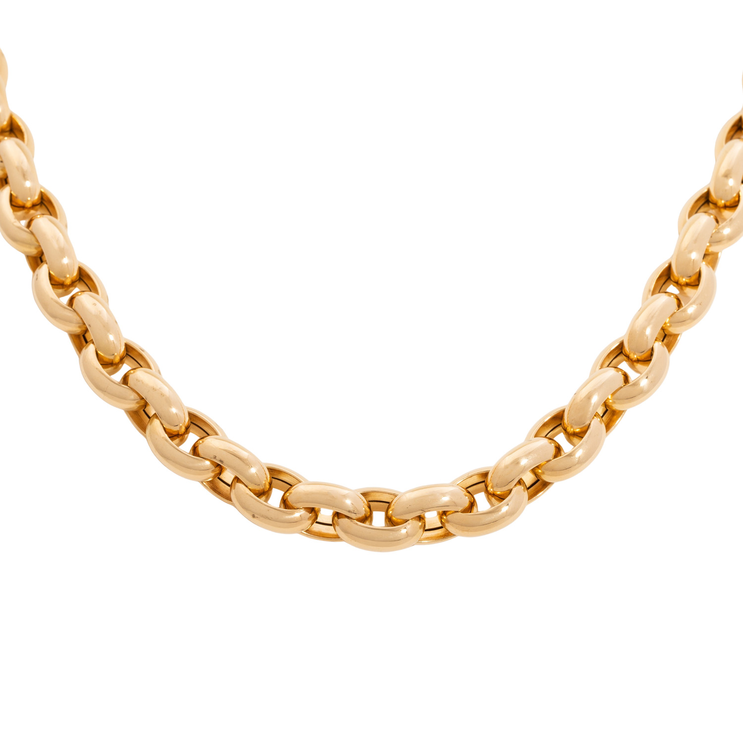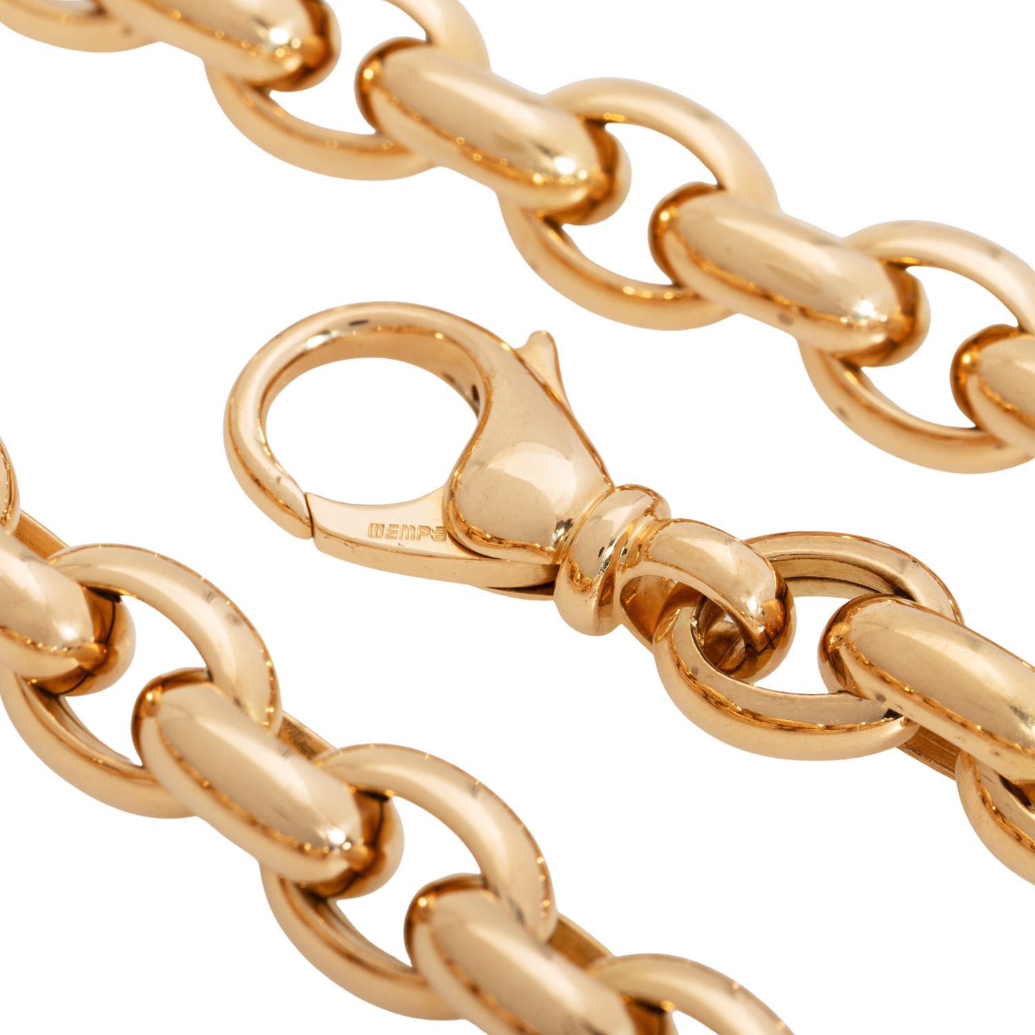 GG 18K, 102,4 g, L: ca. 61 cm, B: ca. 0,9 cm, mit Karabiner, 20./21. Jh., minimale Tragespuren, mit Herstellerpunze 'WEMPE'.