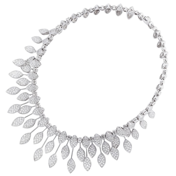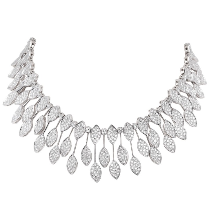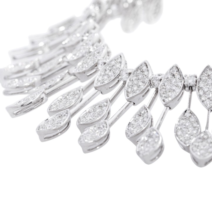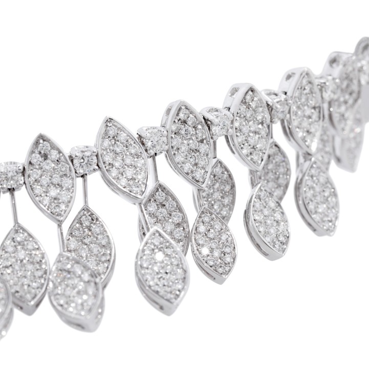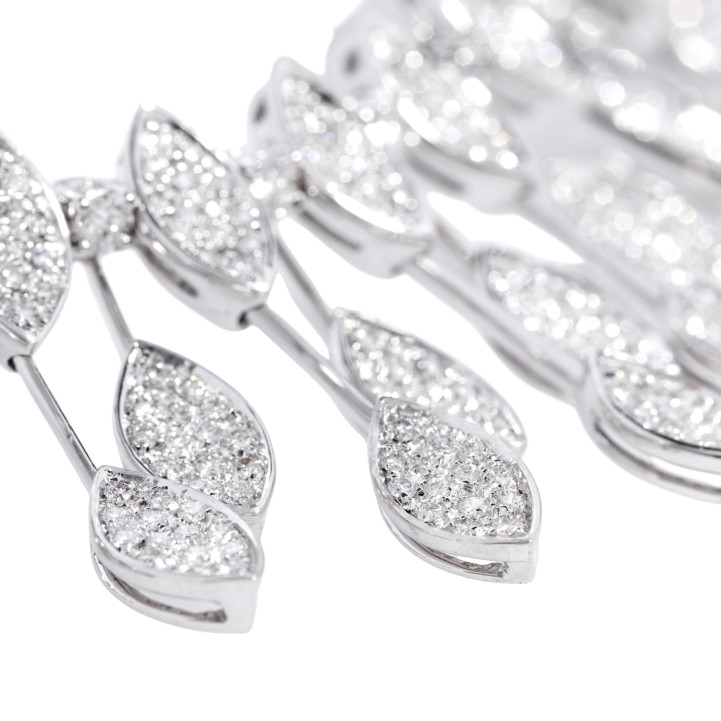 insgesamt 876 Brillanten von zus. ca. 11 ct, sehr gute - gute Farbe und Reinheit, WG 18K, 104,9 g, L.: ca. 36 cm, 20./21. Jh., Tragespuren, Herstellername und Seriennummer 5761.