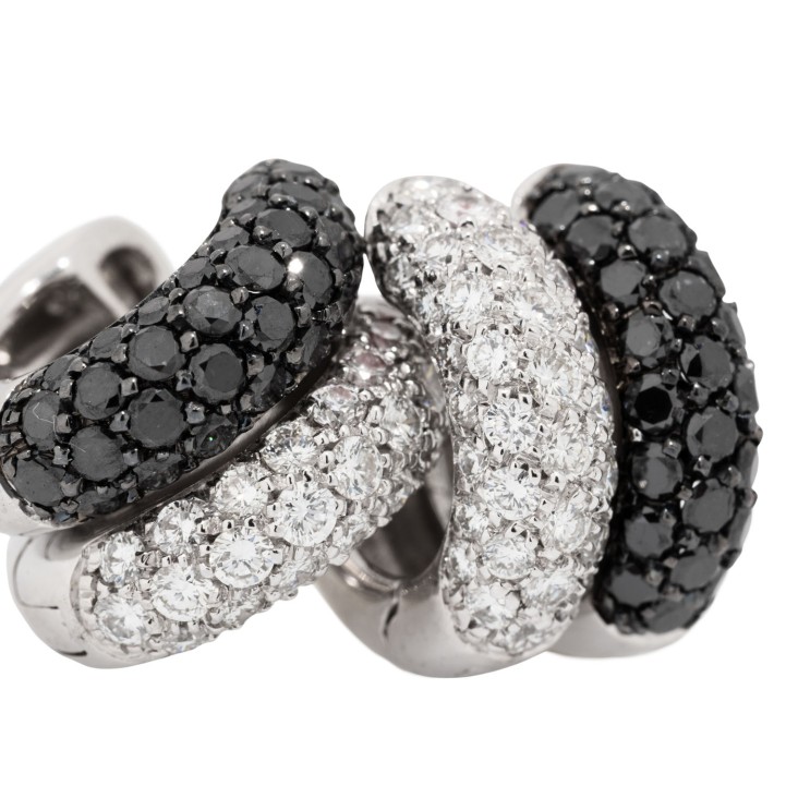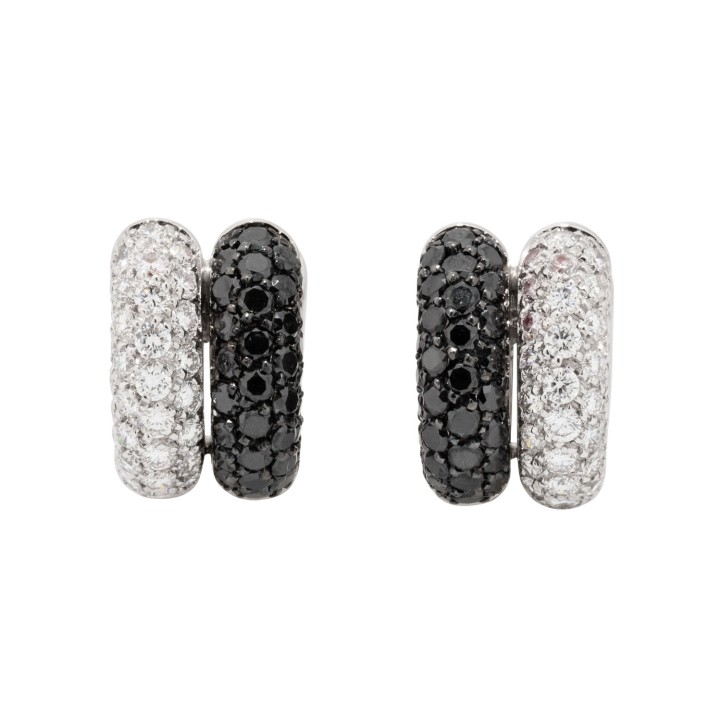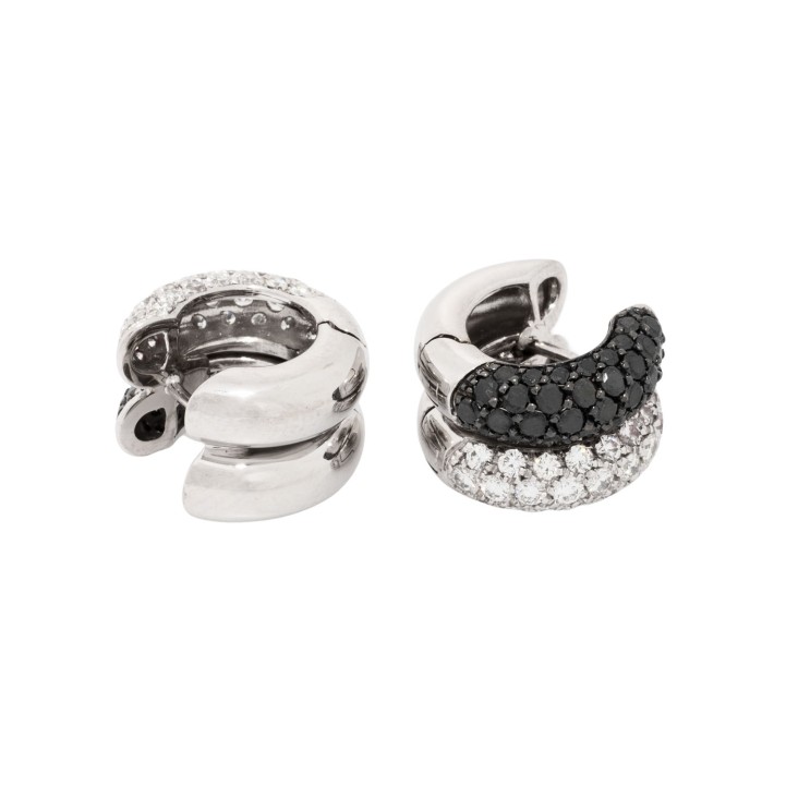 zus. ca. 1 ct, schwarze und farblose Brillanten, gute Farbe und Reinheit, WG 18K, 11,9 g, 21. Jh., Tragespuren
