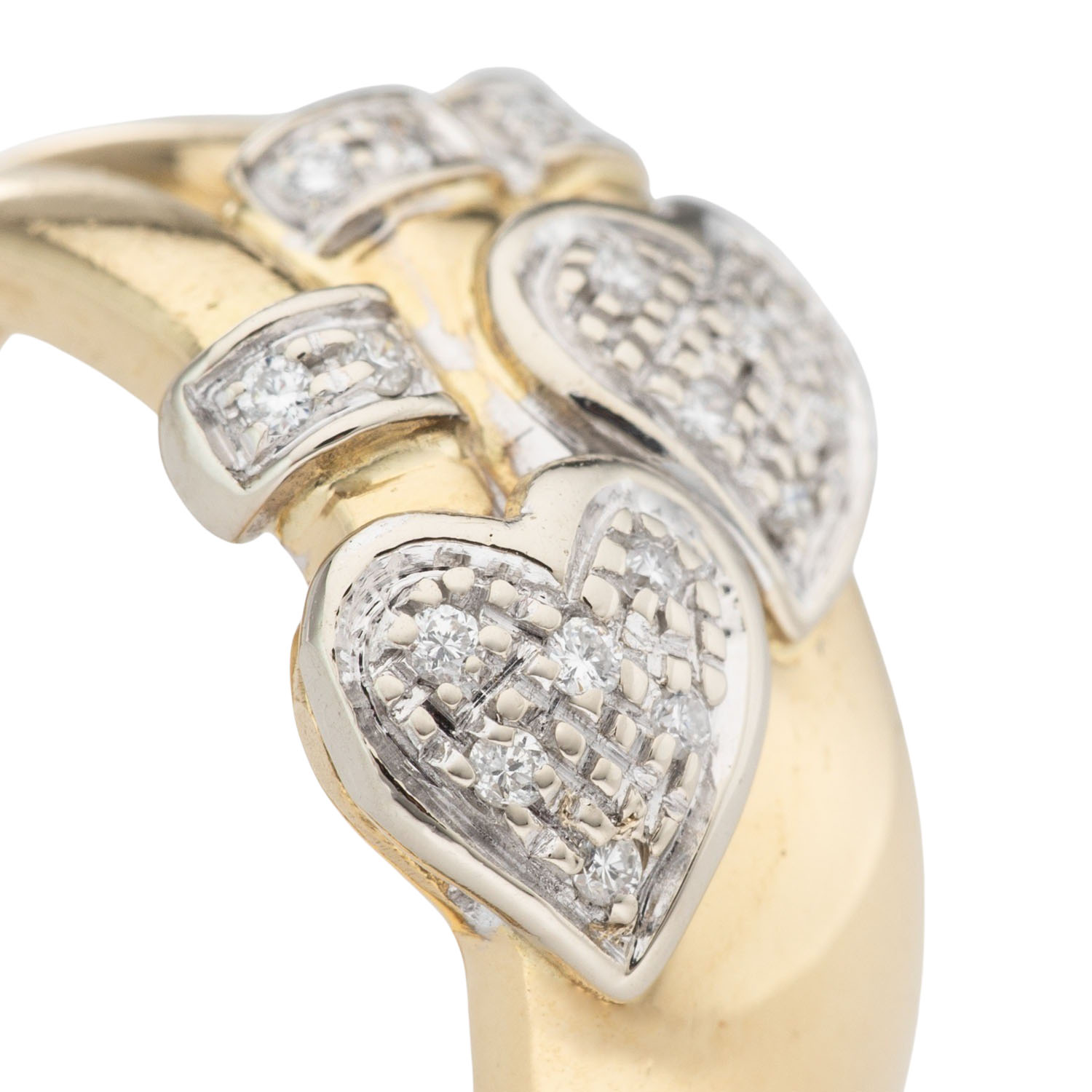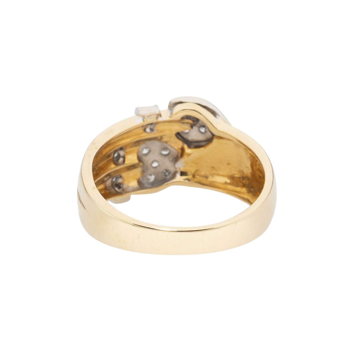 zus. ca. 0,18 ct, FW (F-G)/VVS, pavé gefasst, GG/WG 18K, 6,2 g, RW: 54, B: ca. 3,3 - 11,5 mm, Ende 20. Jh., minimale Tragespuren, mit Herstellerpunze 'WEMPE'.
