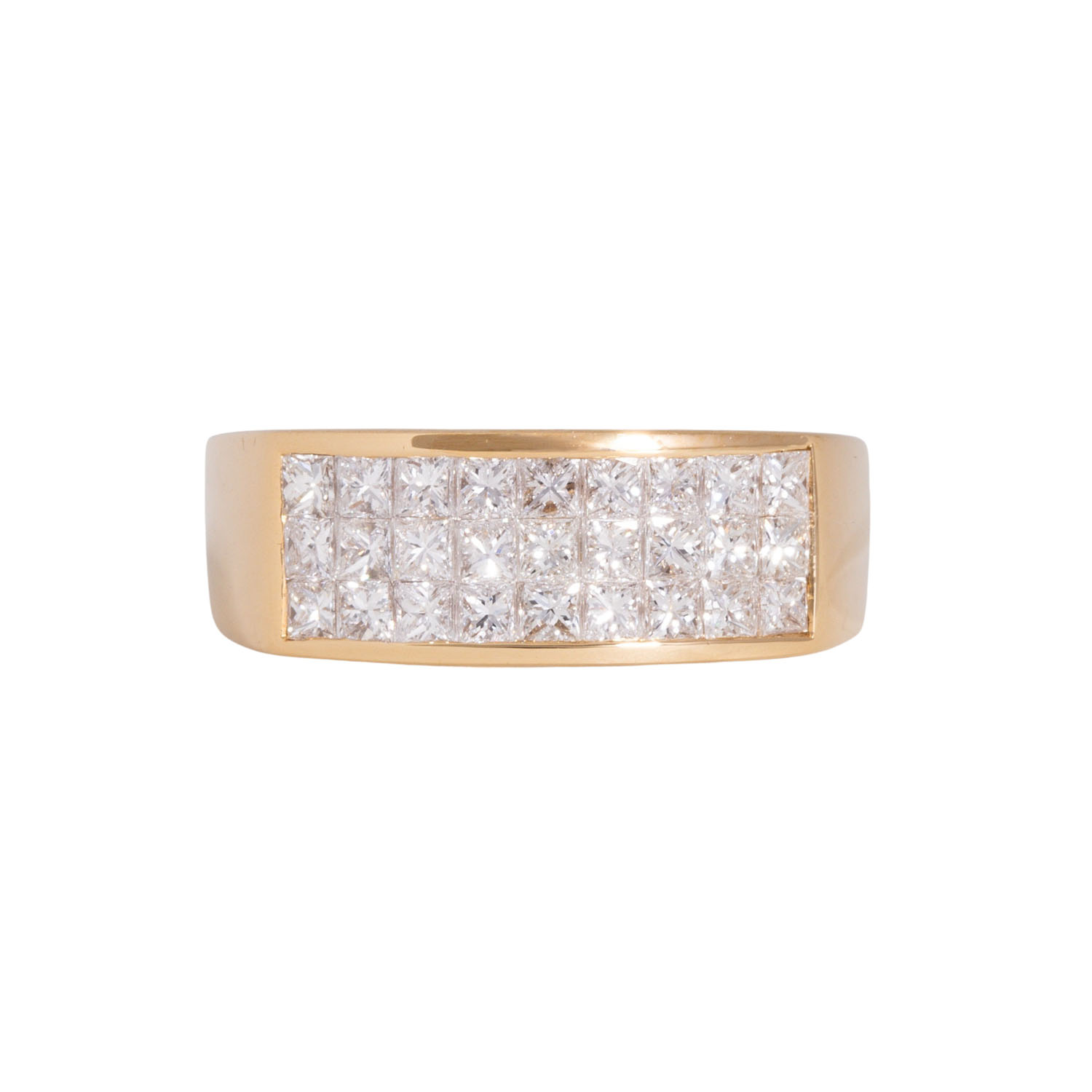 von zus. ca. 1,35 ct in unsichtbarer Fassung, FW (G)/IF, 18K GG, 9,7 g, RW: 55, 1990er Jahre, leichte Tragespuren, inkl. Wempe Zertifikat u. Kaufbeleg.