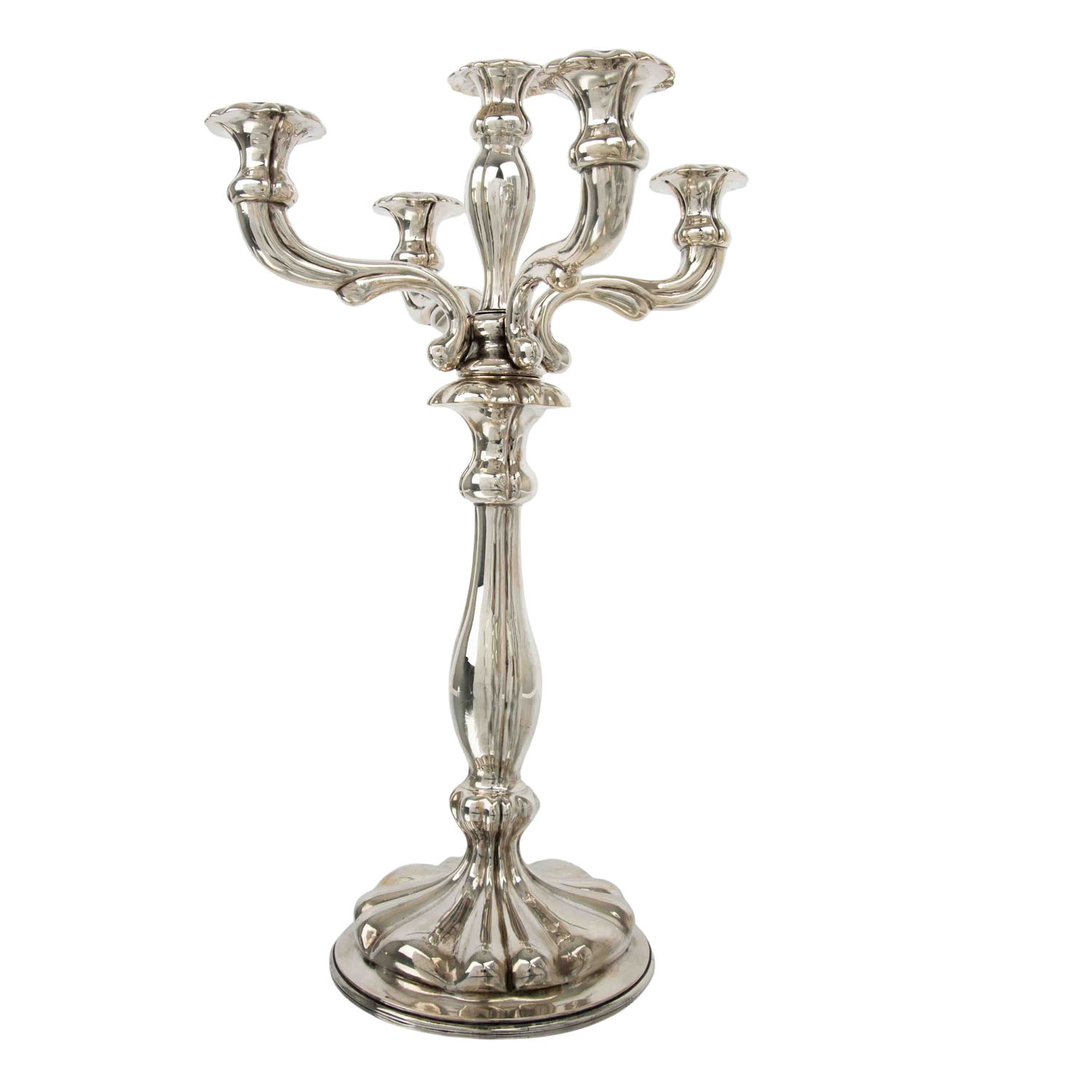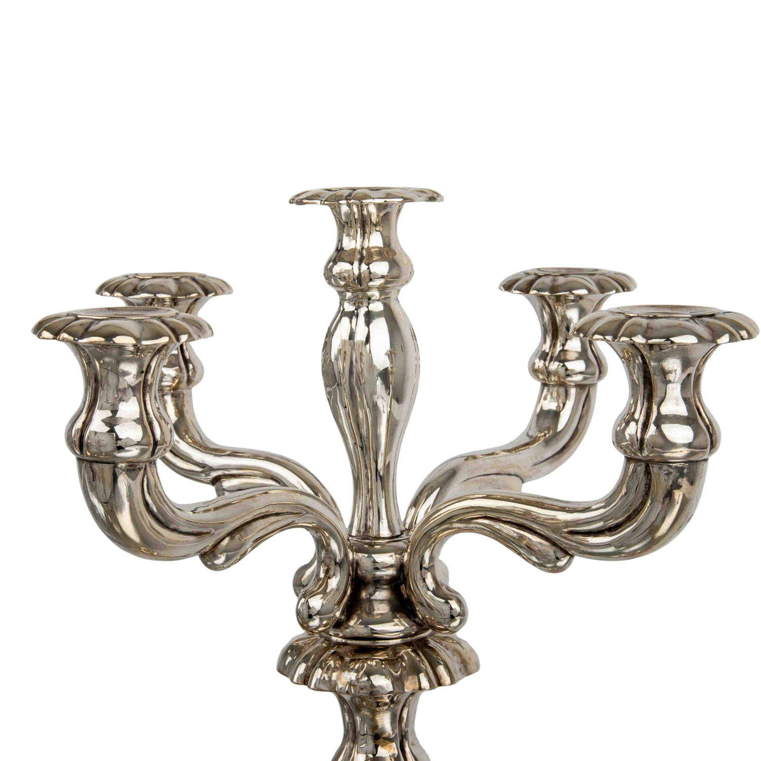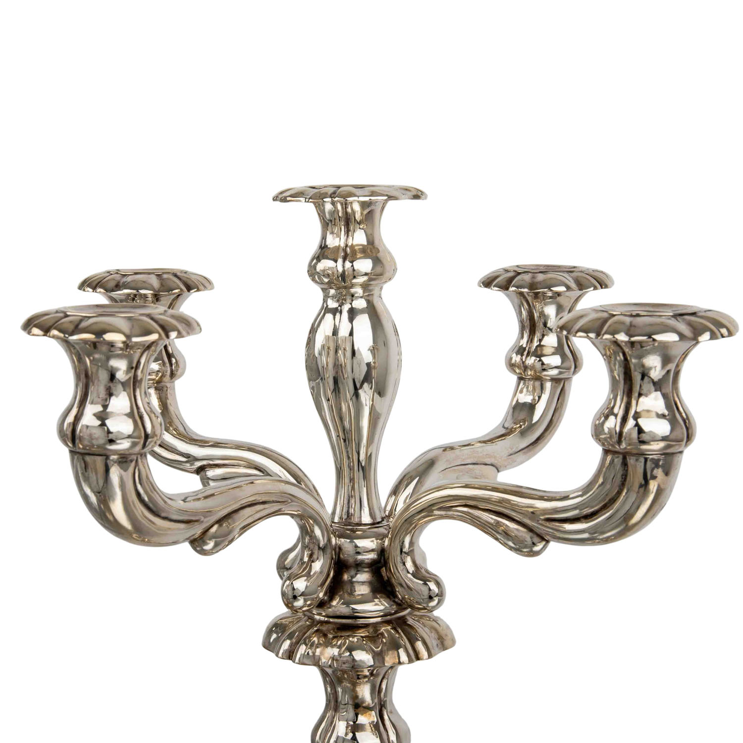 SCHLEISSNER & SÖHNE 5-flammiger Kerzenhalter, 800 Silber, 20. Jh.
