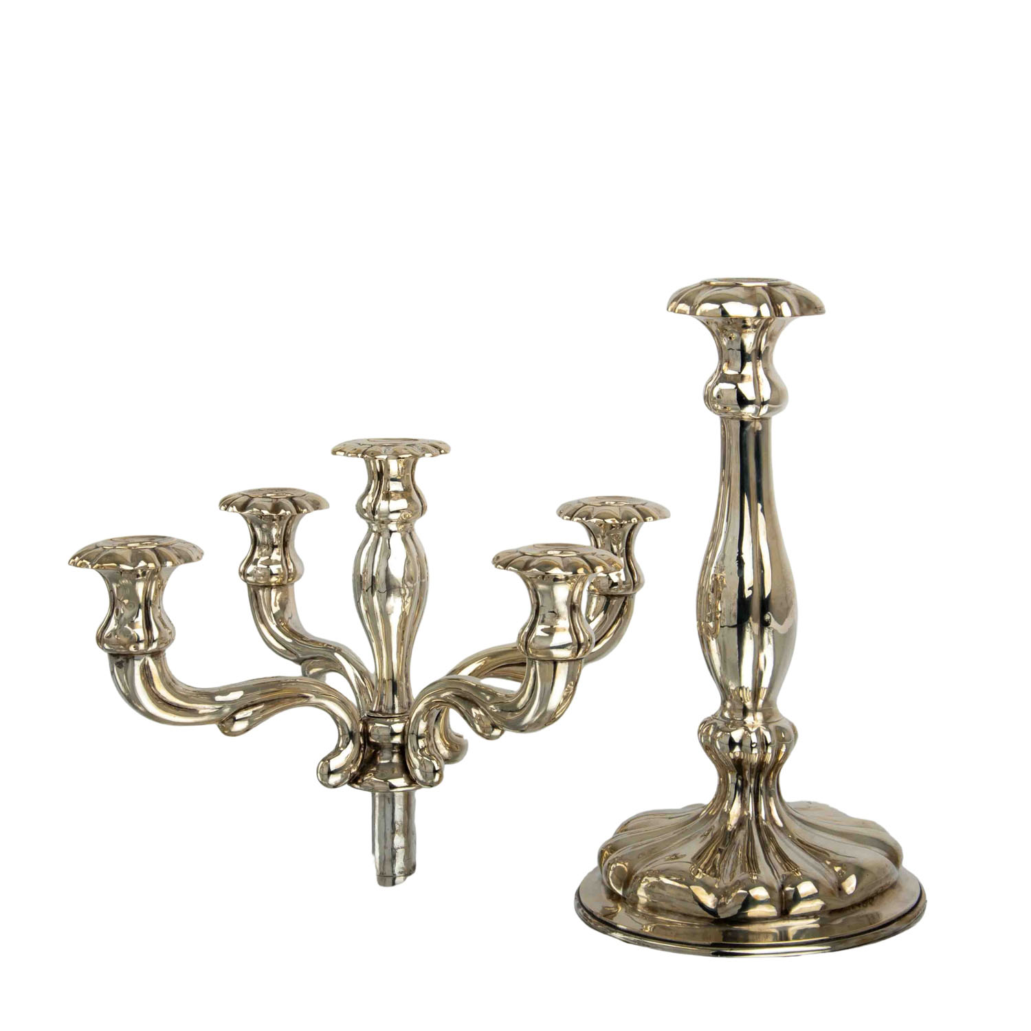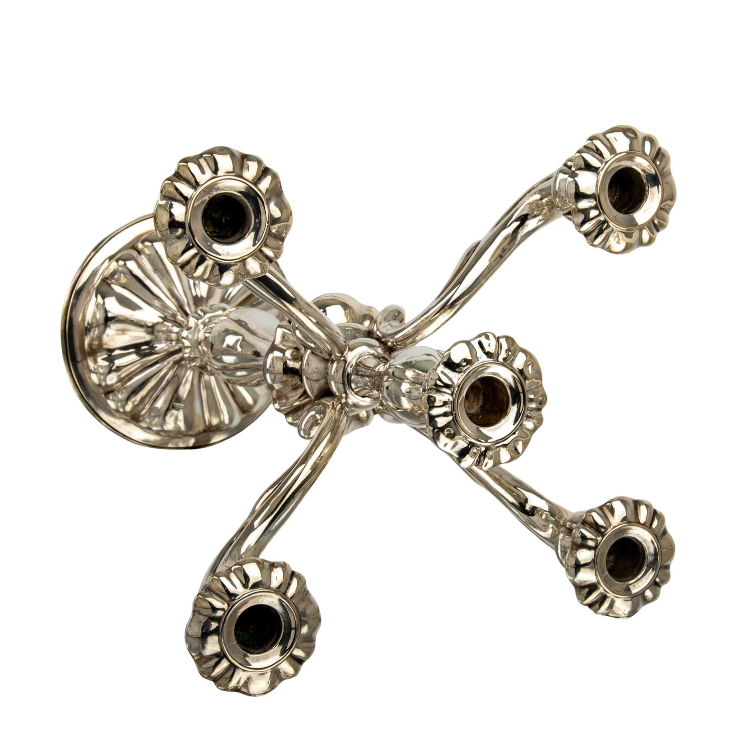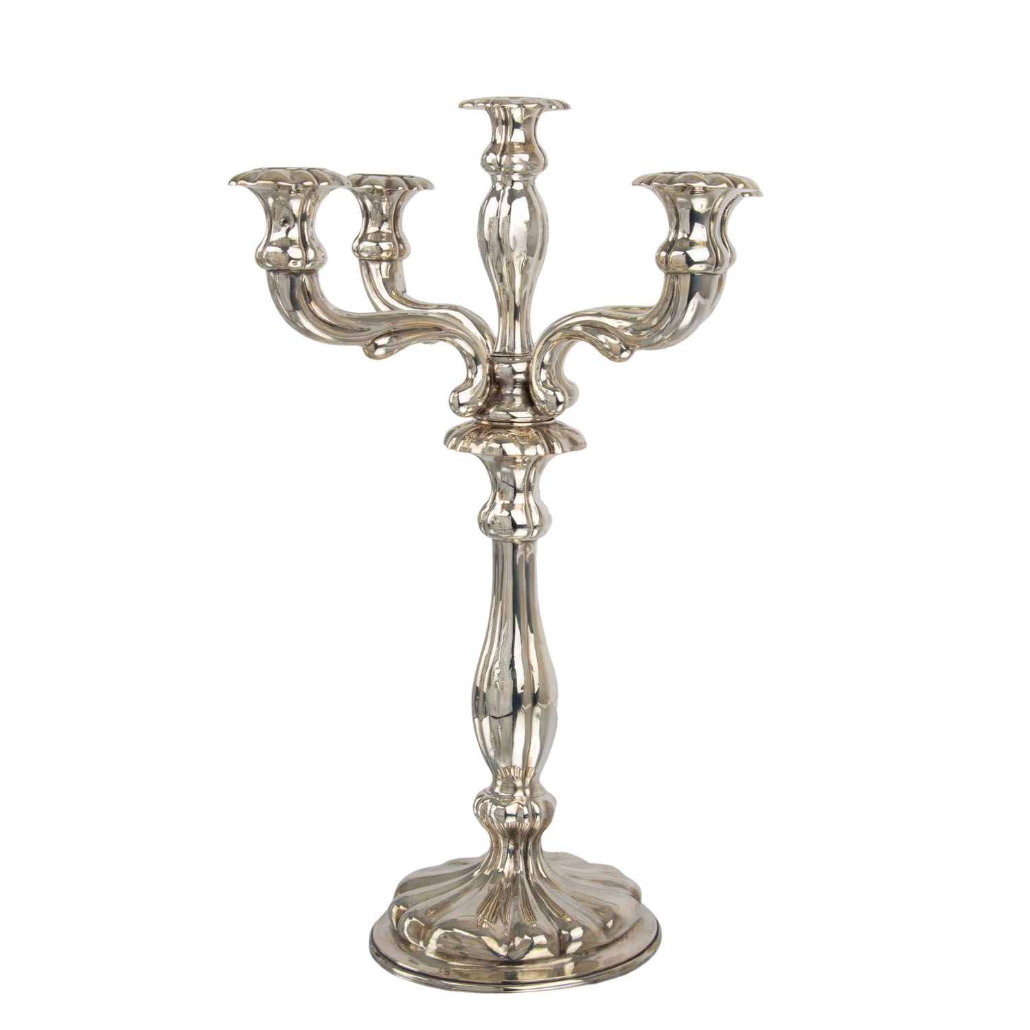 SCHLEISSNER & SÖHNE 5-flammiger Kerzenhalter, 800 Silber, 20. Jh.