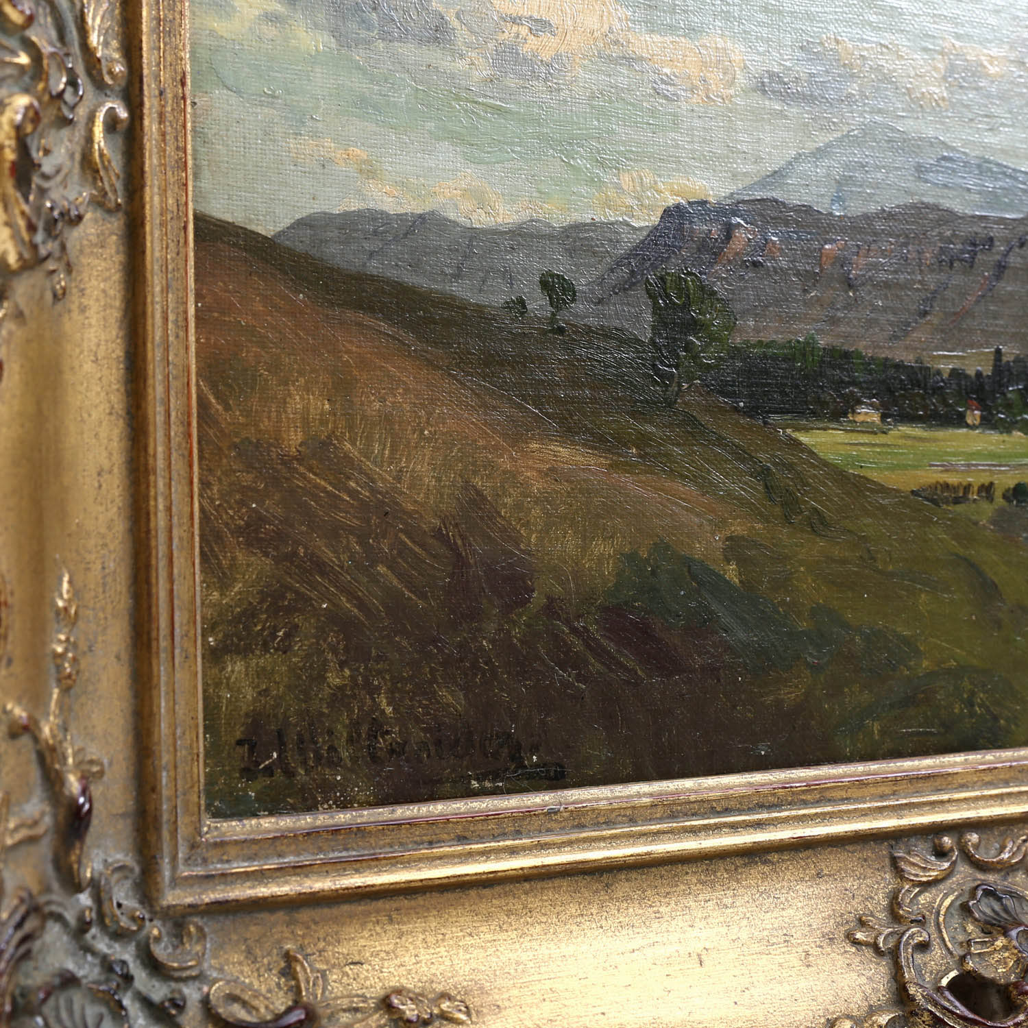 WILLROIDER, JOSEF (1838-1915) 'In den Vorbergen'. Öl/Lwd., maroufliert, unten links signiert, ca. 24x32, Altersschäden, gerahmt.