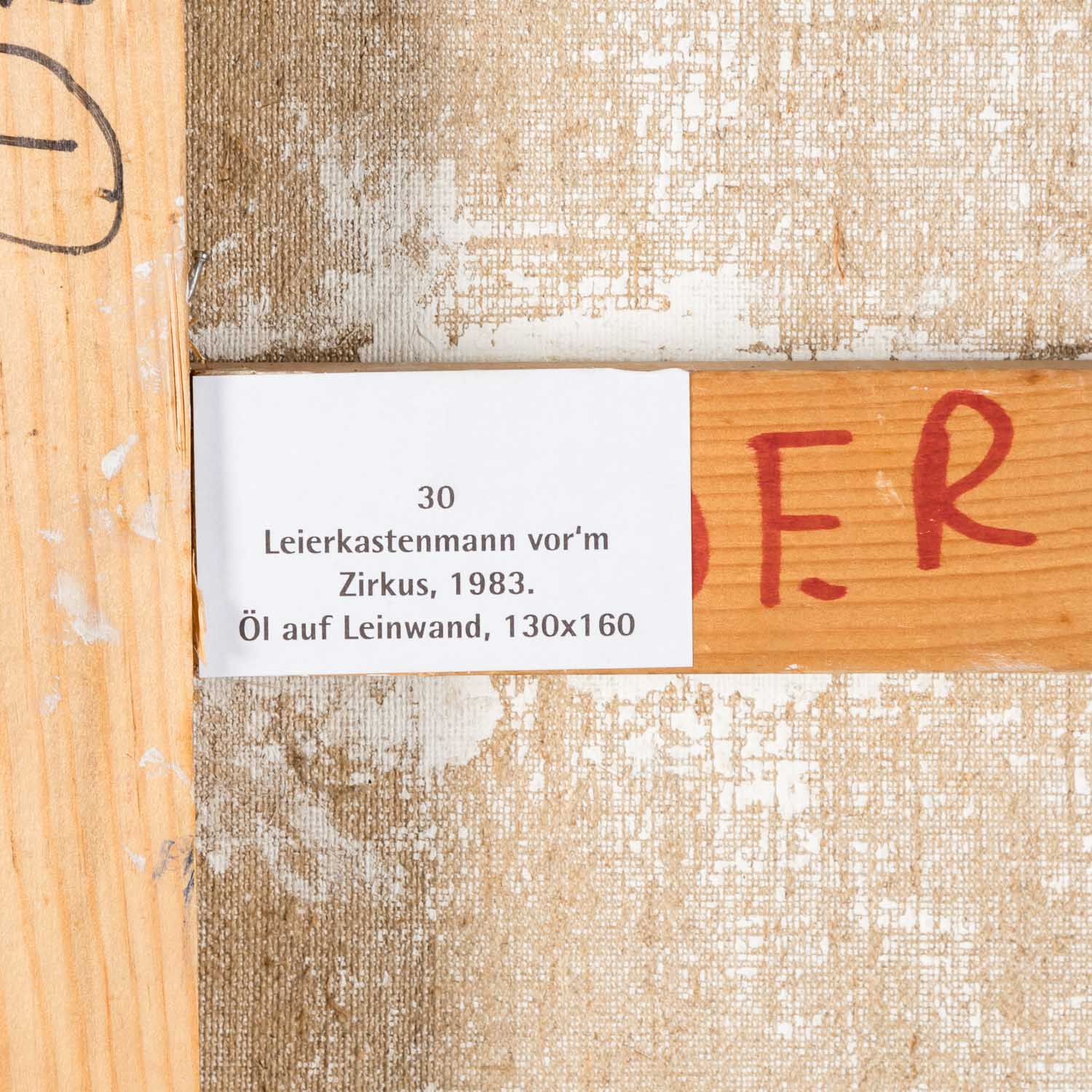 ZIMMERMANN, MICHAEL (geb. 1946), 'Leierkastenmann vor'm Zirkus', 1983,