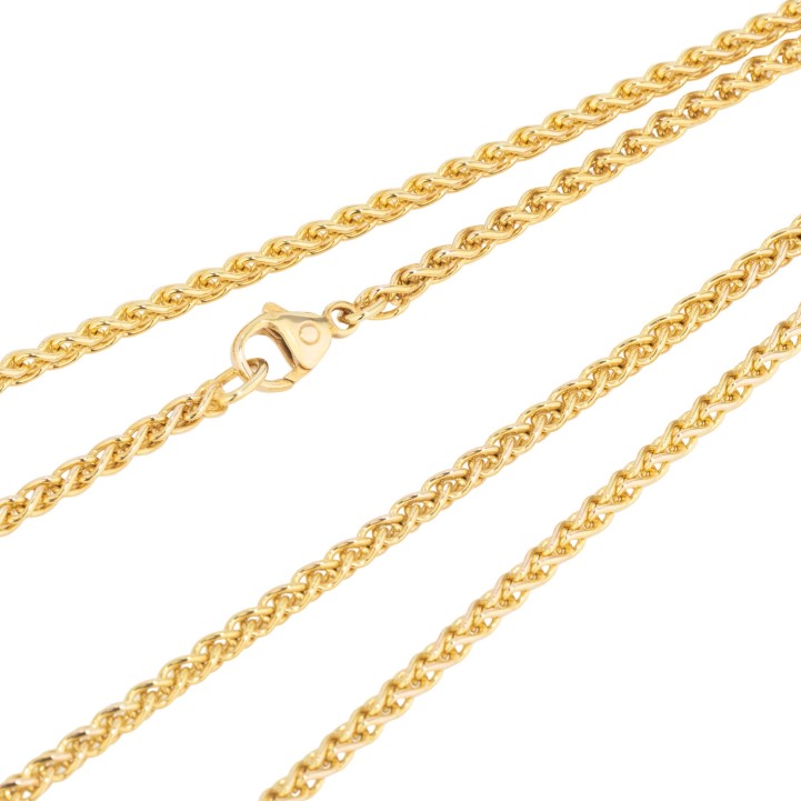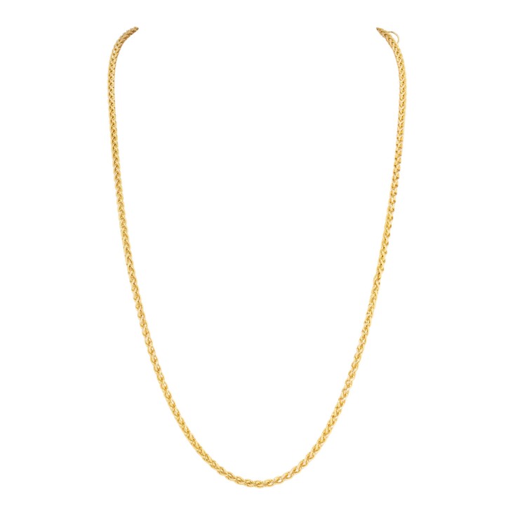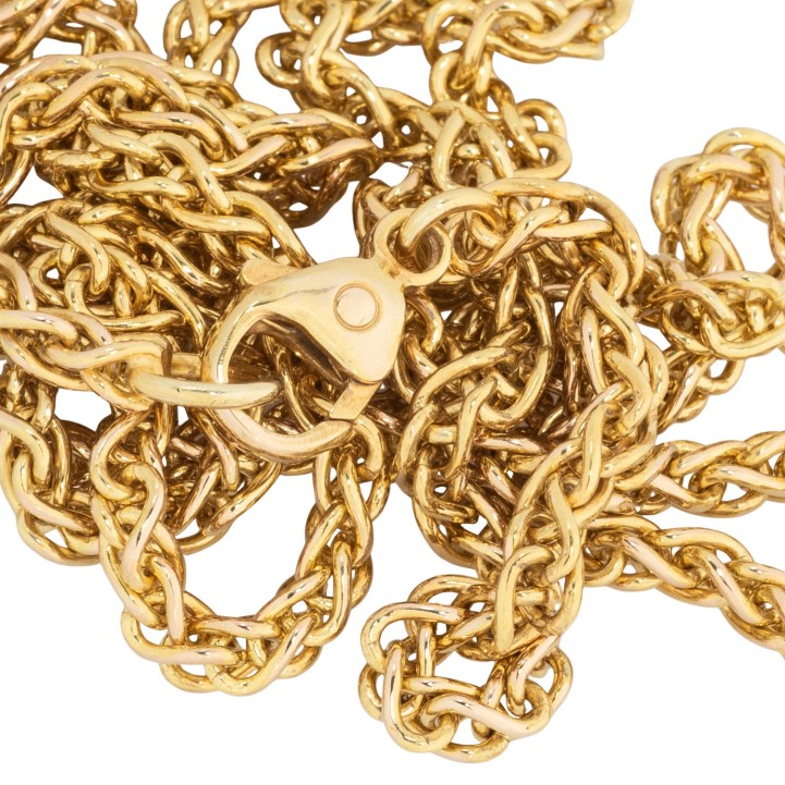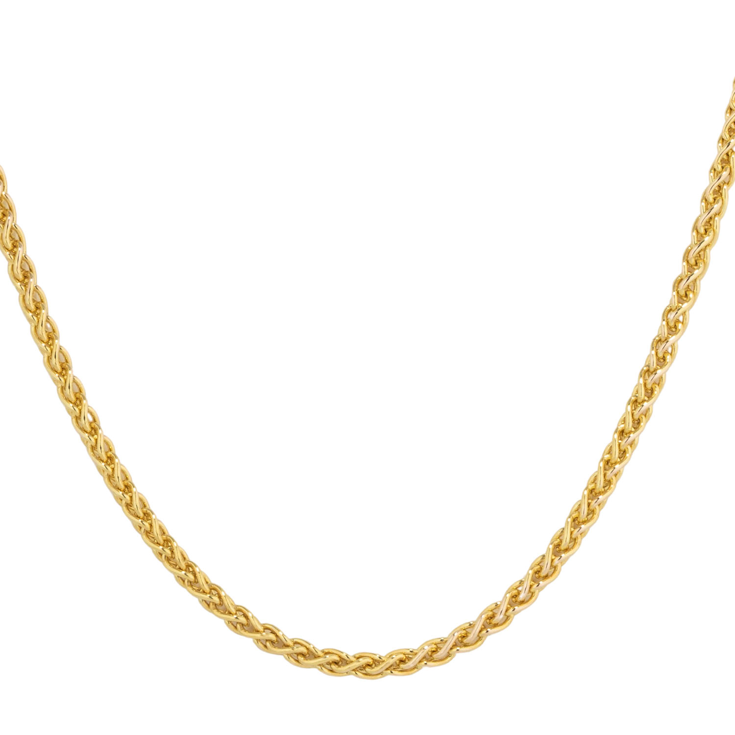 GG 14K, 29,3 g, L: ca. 60/ Zwischenöse / 70 cm, B: ca. 3,3 mm, 20./21. Jh, leichte Tragespuren, Karabiner.