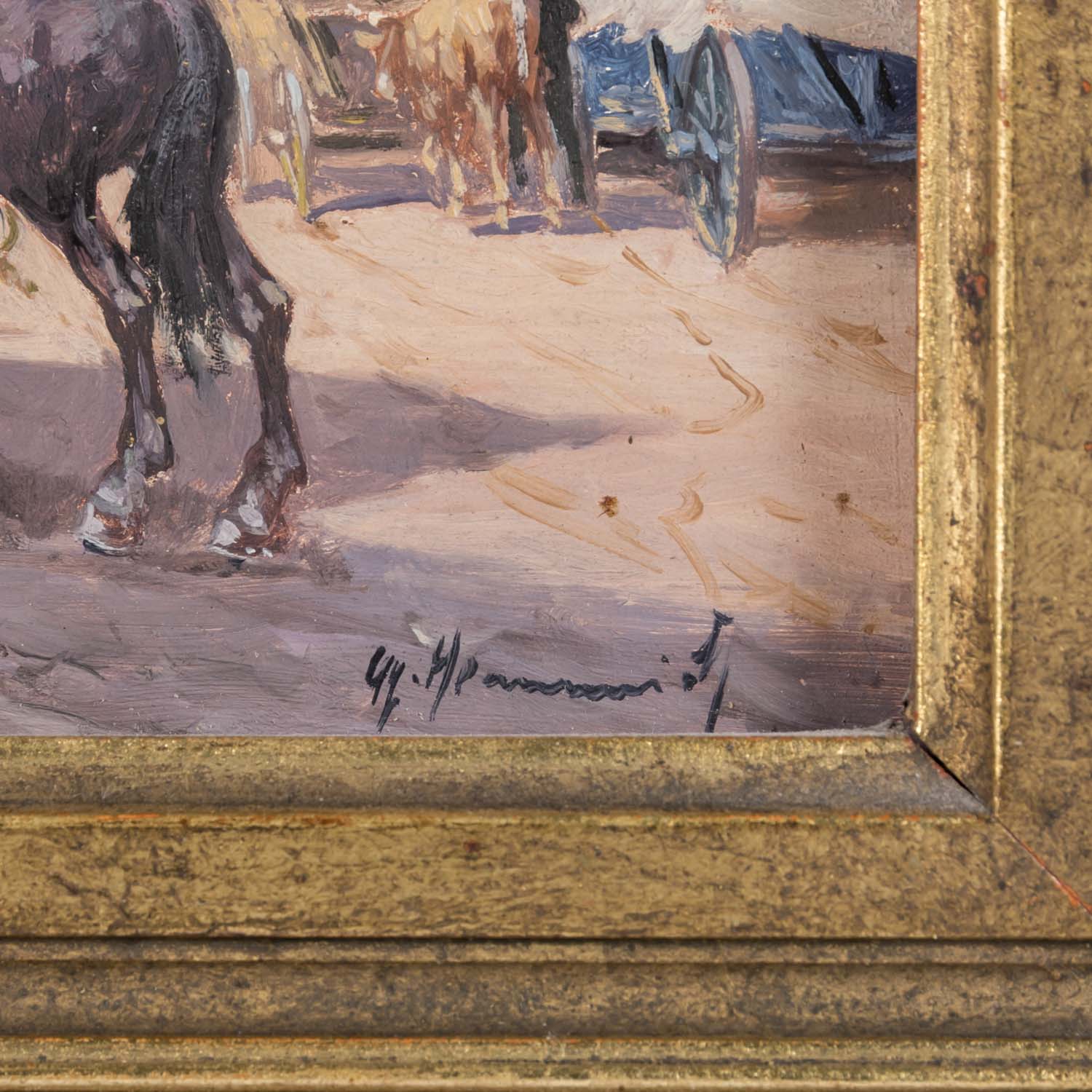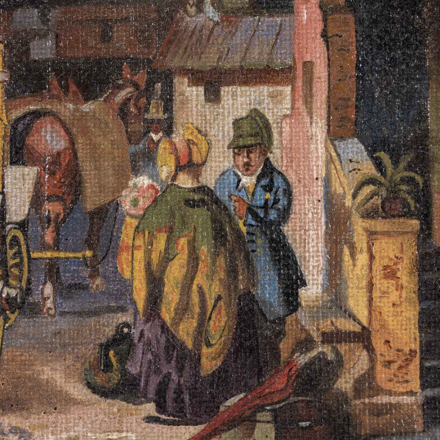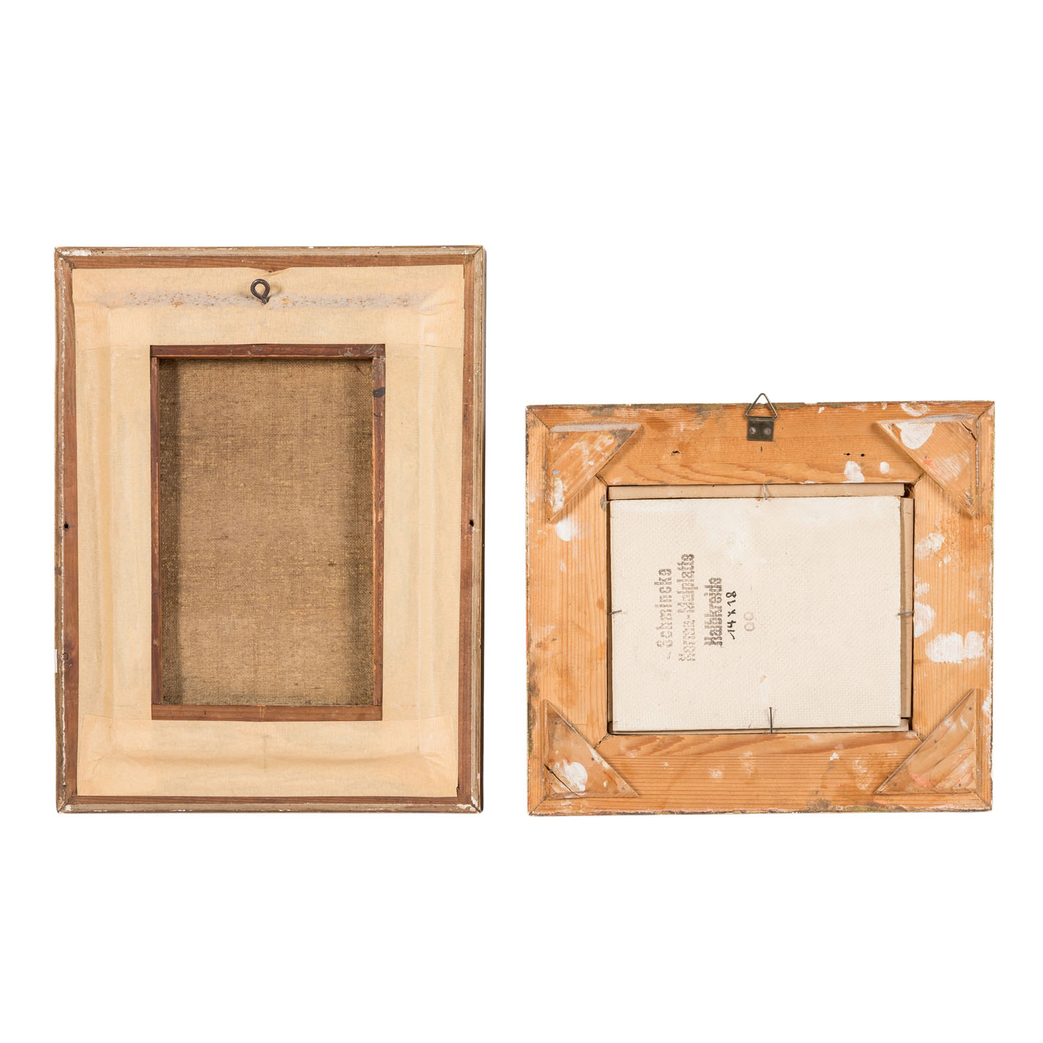 Öl auf Leinwand bzw. Karton, beide mit undeutl. Unterschriften. HxB: 27/20 cm. und 14/18 cm. Beide gerahmnt, HxB: 35/27 cm. und 26/30 cm.