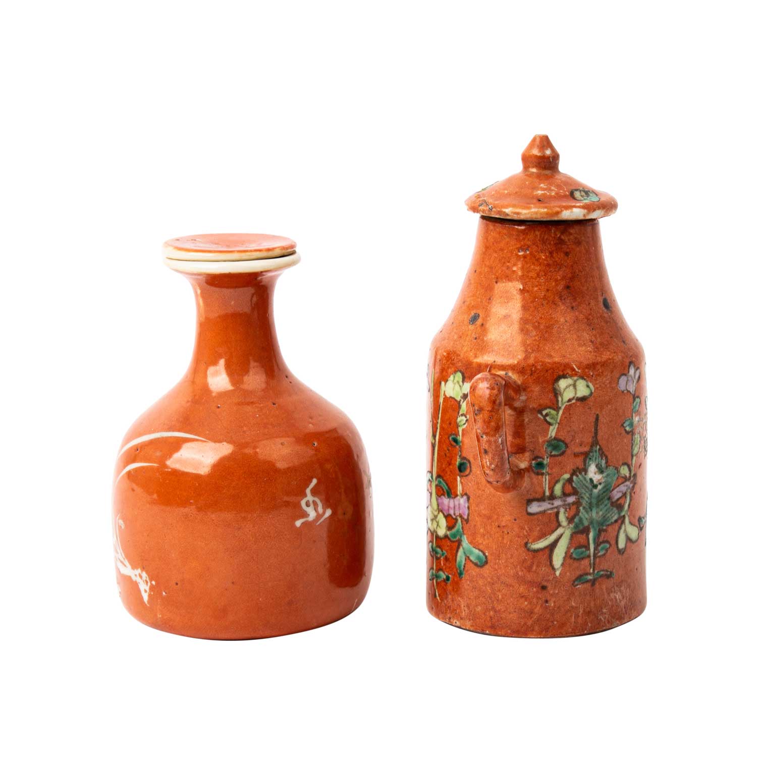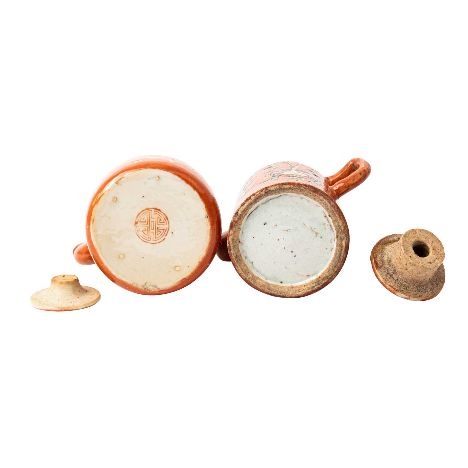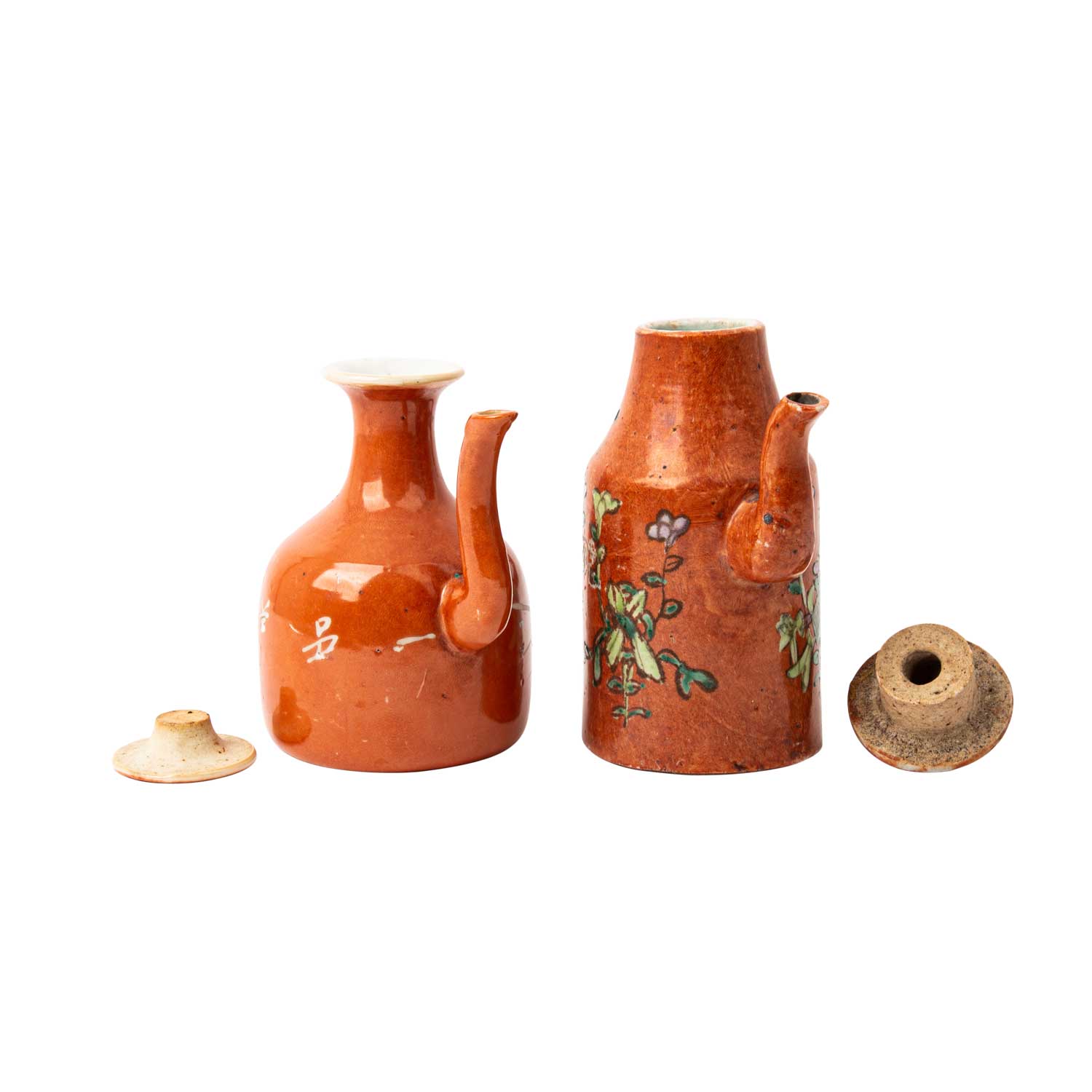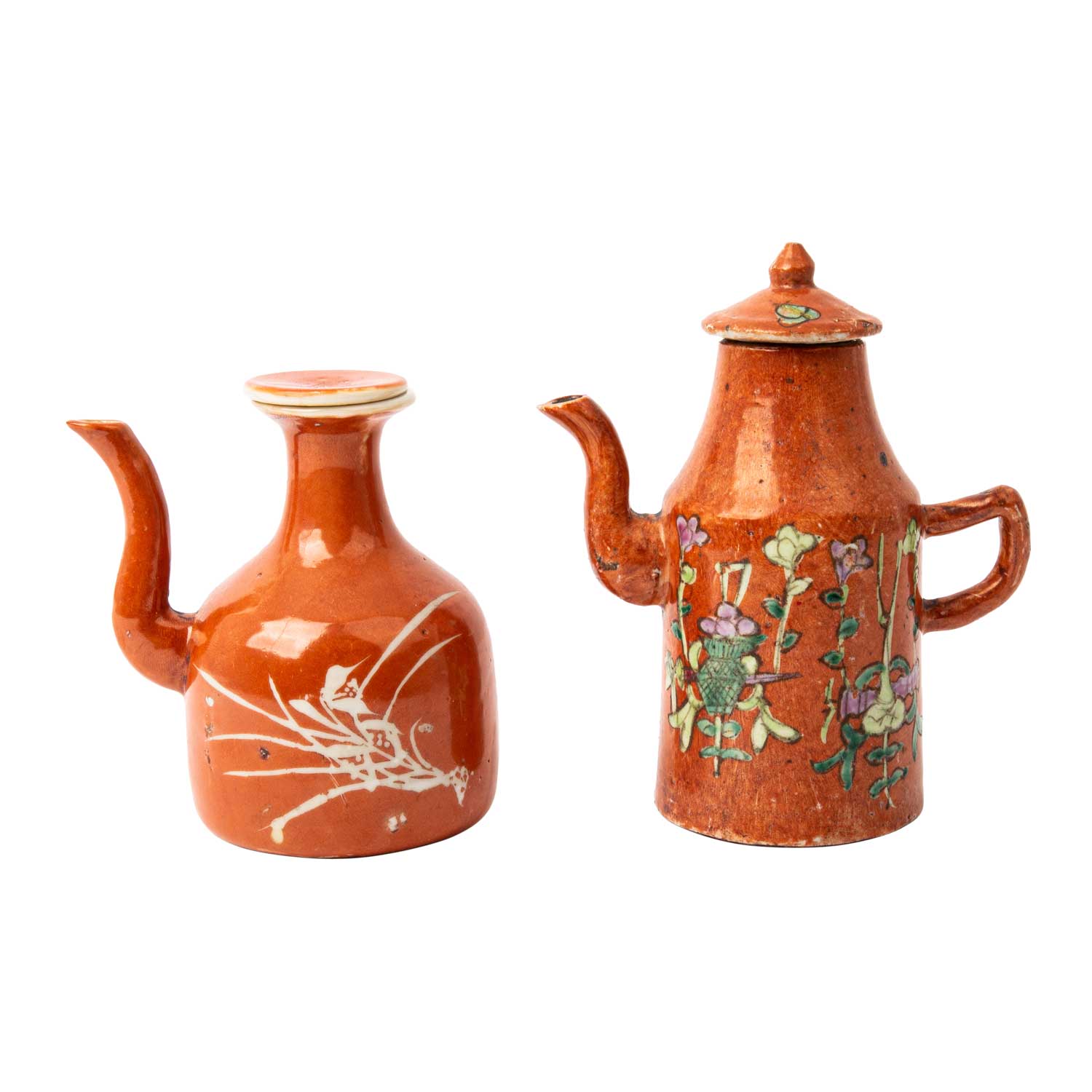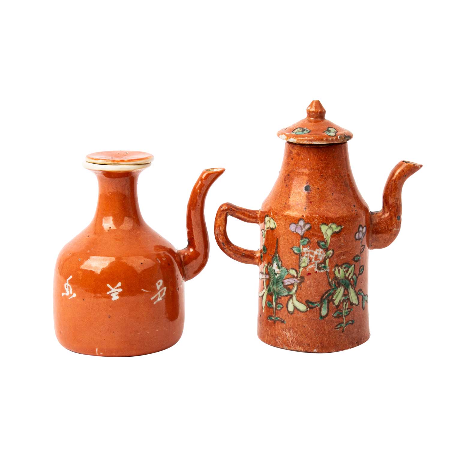 Zwei kleine Kannen mit eisenroter Glasur. CHINA, um 1900.
