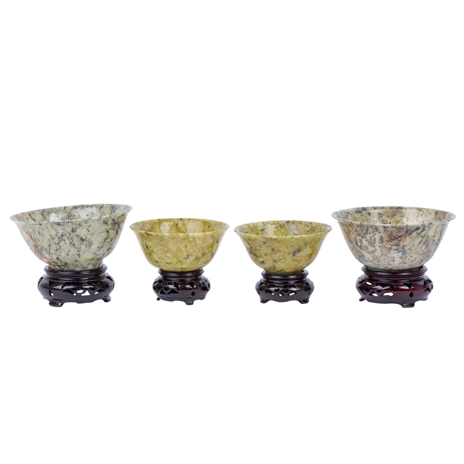 Zwei Paar Schalen aus grün marmorierter Jade. CHINA, 20. Jh.: